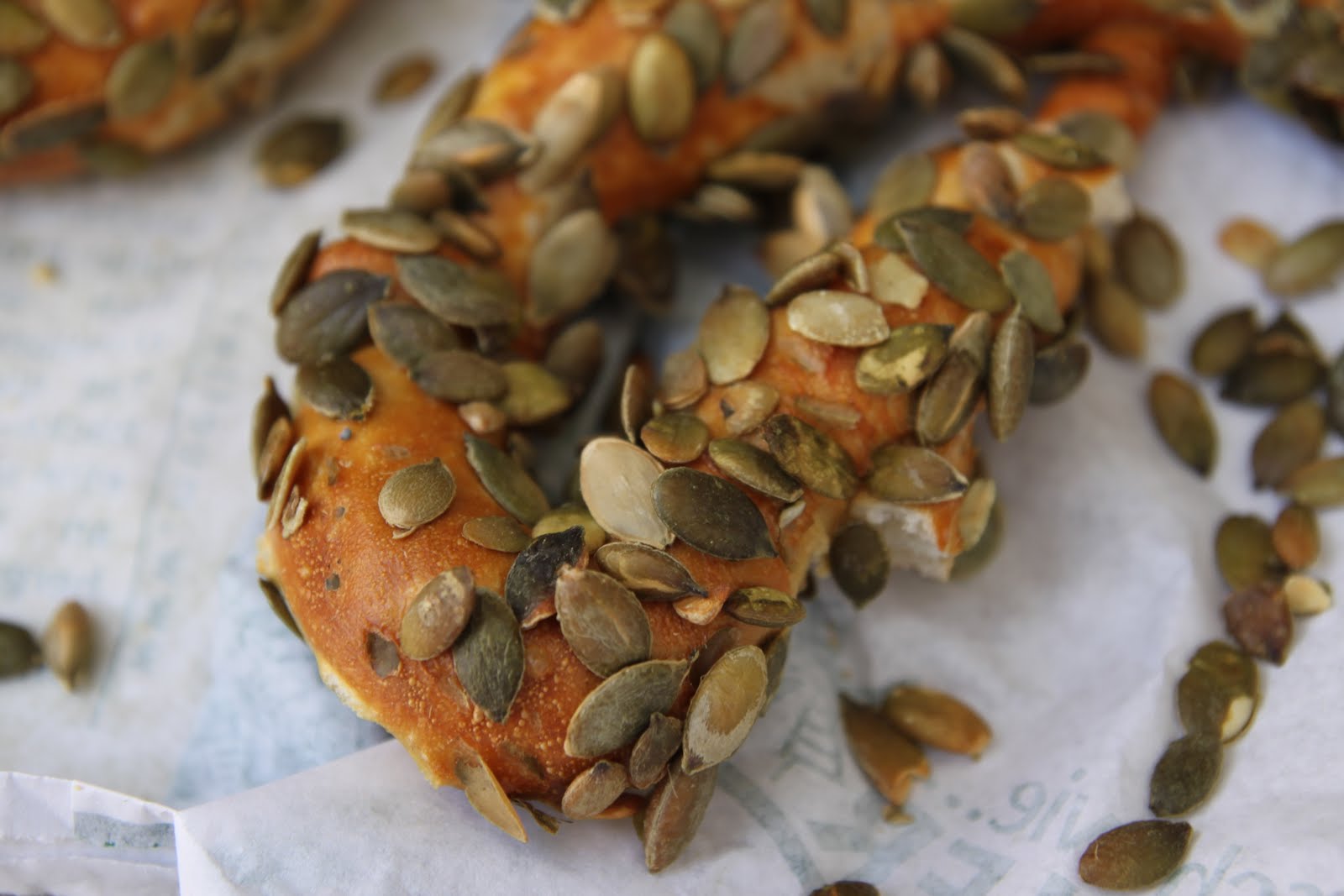 Depuis 2001, j’avais en mémoire les bretzels aux graines de courges, que j’achetais tous les jours dans la boulangerie Müller.
