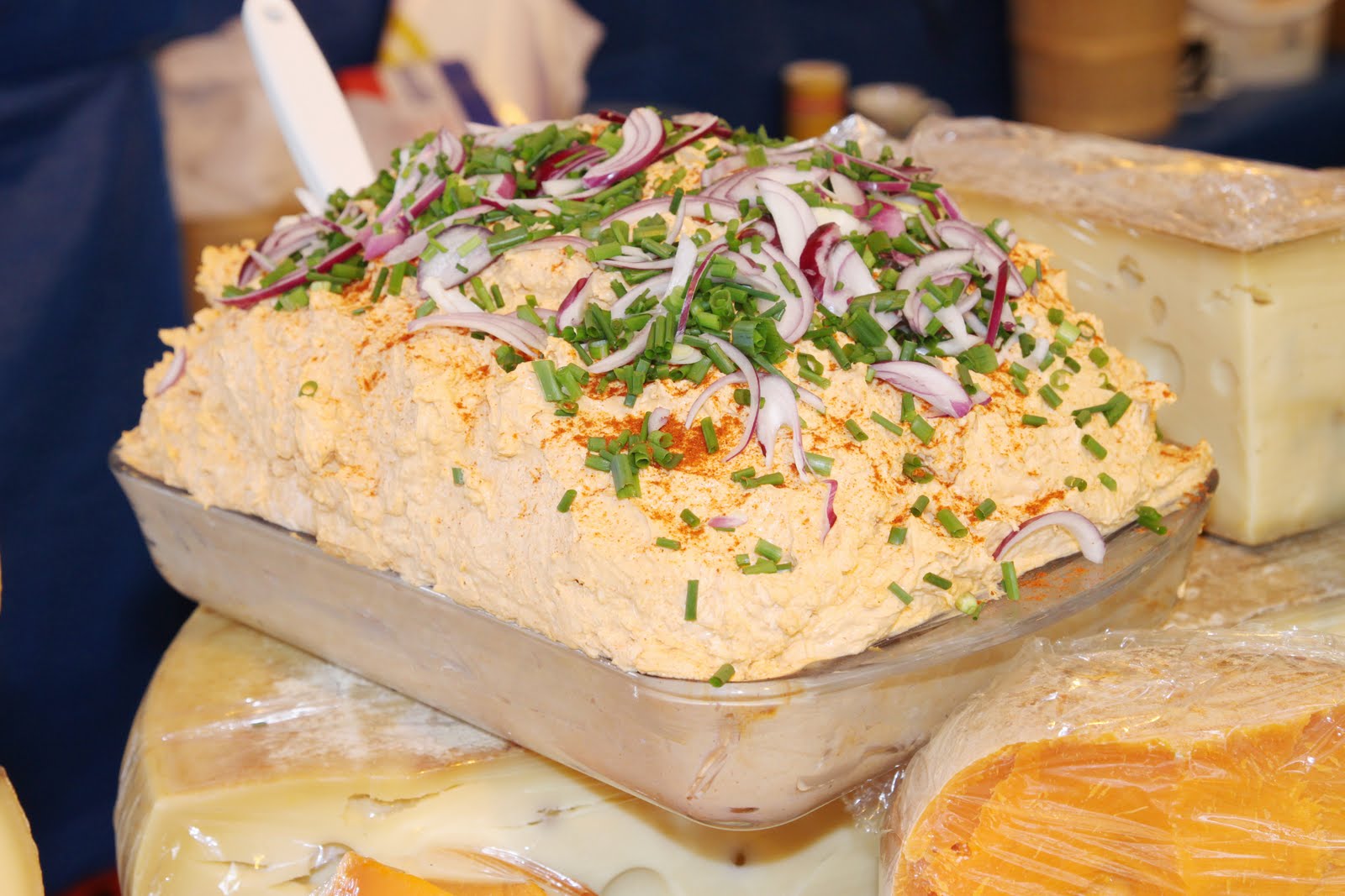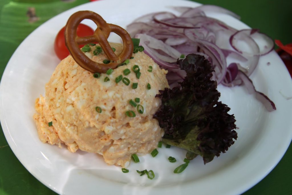 Voici une spécialité fromagère, l’Obazda! Une sorte de pâte à tartiner à base de camembert, de beurre, de fromage frais et de paprika que l’on mange avec des oignons crus et du pain. Cela peut paraitre surprenant, mais c’est en réalité très bon!