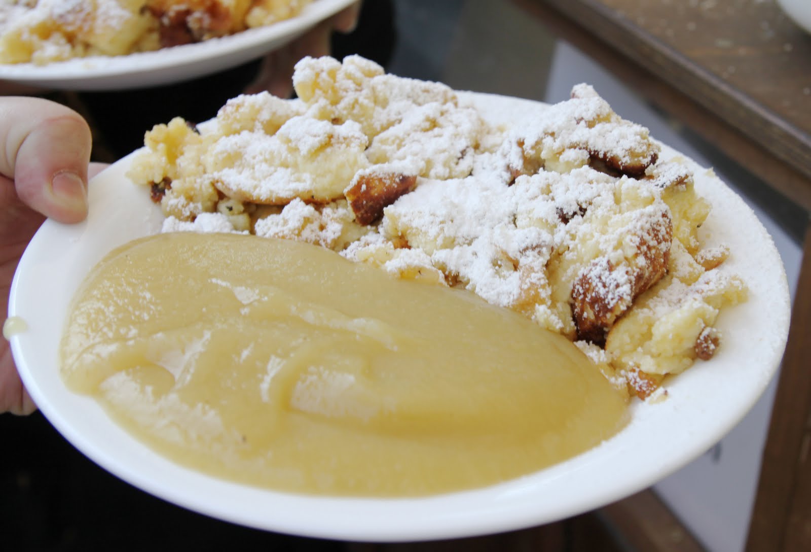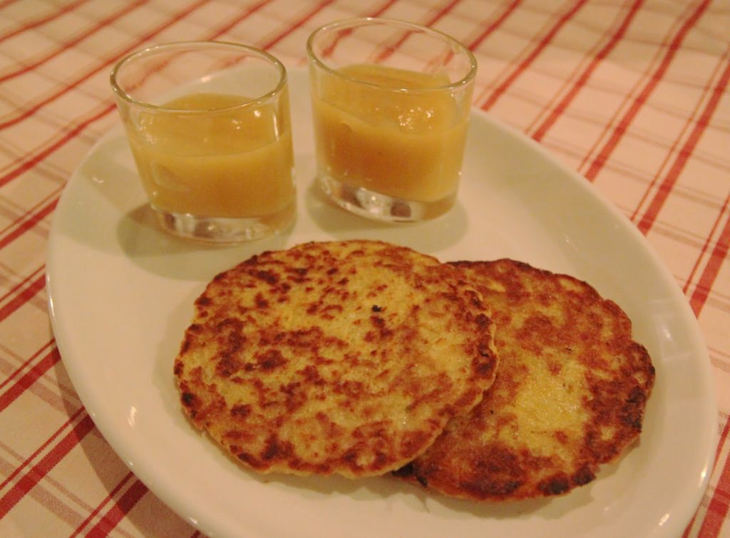 Voici les Kartoffel Puffer. Des galettes de pommes de terre salées, servies avec de la compote de pomme.