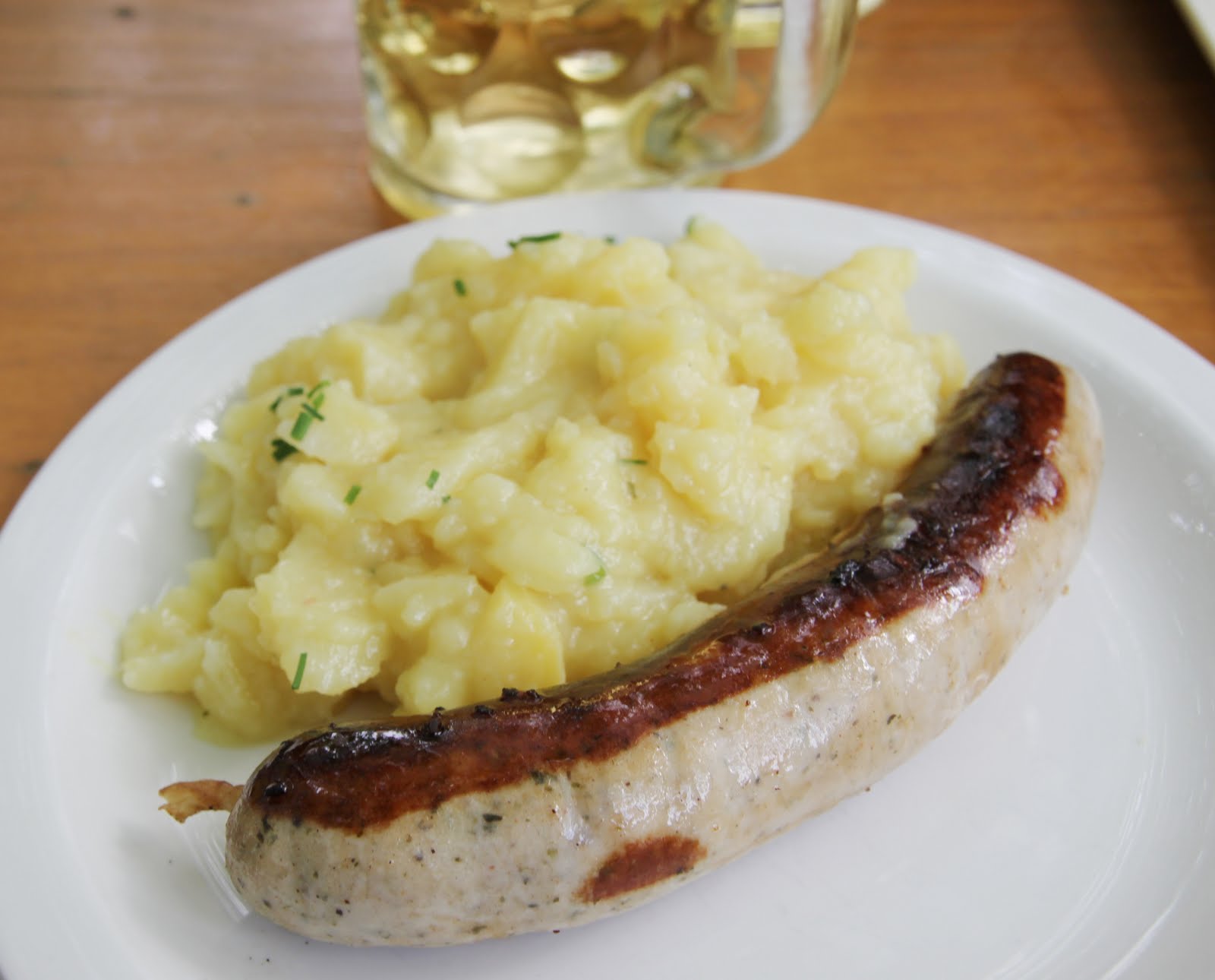 Bien sûr, je ne reste pas à prendre des photos, mais je participe activement à perpétuer moi aussi les traditions! Alors, hop! Des chopes de radler (moitié bière, moitié limonade!), des saucisses avec de la salade de pommes de terre et un bretzel à partager!