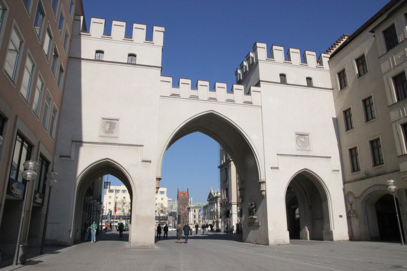 La ville est ceinturée de portes. Sur la rue piétonnière qui commence à Karlstor, Neuhauser Strasse, se trouve souvent des petits vendeurs de fruits et légumes…