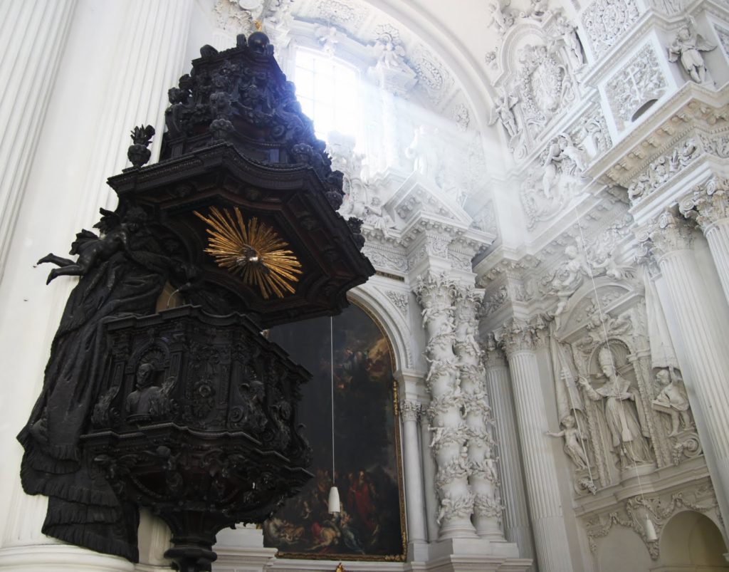 En face de la sortie de Residenz, se trouve la Theatiner Kirsche, très blanche et lumineuse. Je vous mets les photos, car je trouvais la lumière plutôt agréable et photogénique!