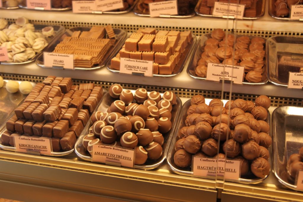 D’un côté les chocolats, de l’autre les pâtisseries, cette boutique est une étape indispensable à la visite de Munich.