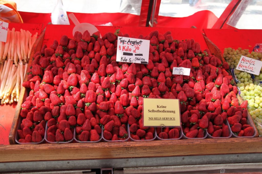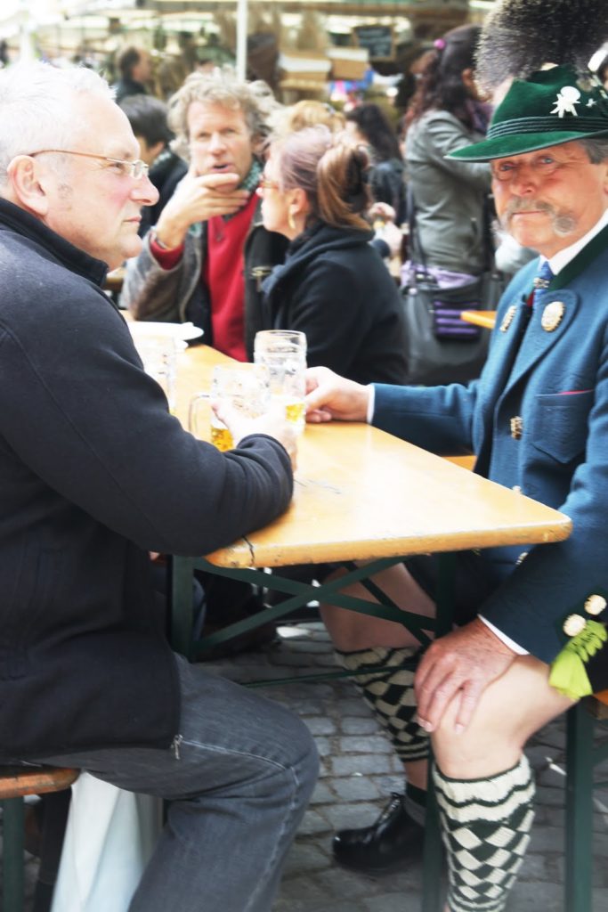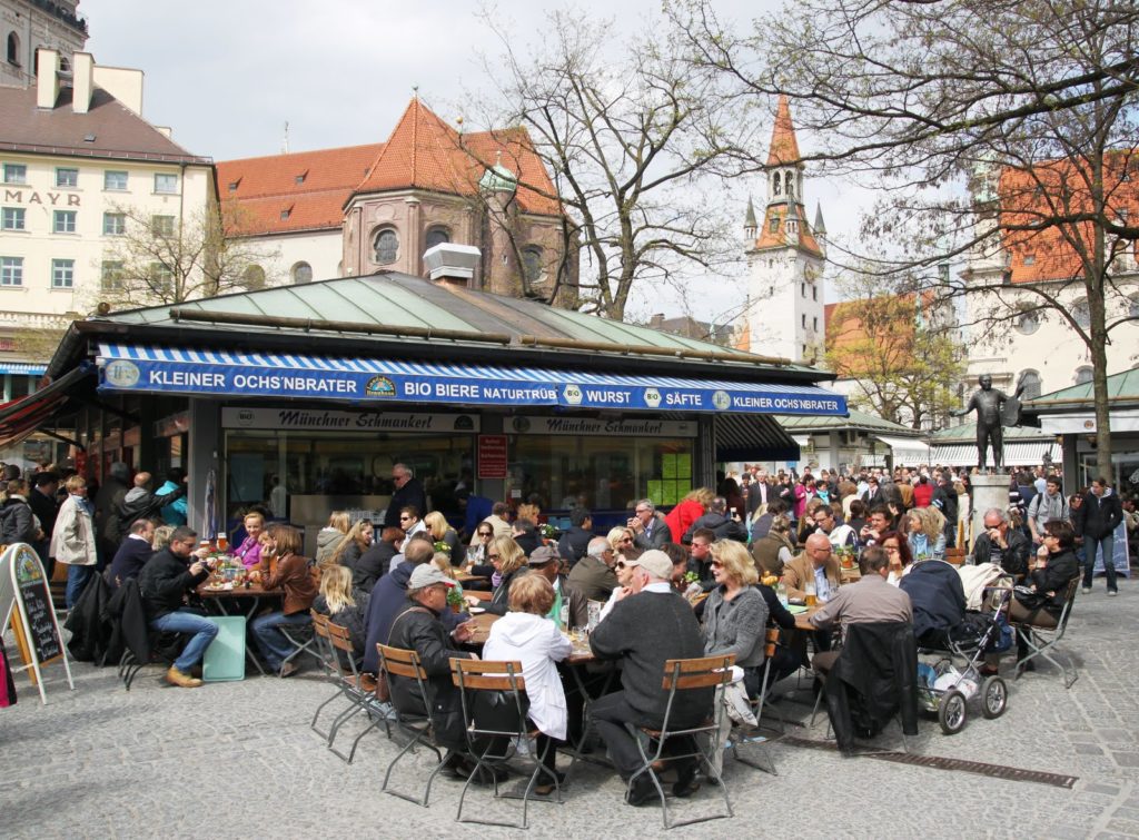 Pour commencer, dès mon arrivée, je me précipite dans le Viktualienmarkt près de Marienplatz. Tous les jours, sauf le dimanche, se trouve à cet endroit un grand marché, avec une quantité prodigieuse de produits locaux. On peut de plus, s’y arrêter pour se sustenter, ou bien se poser pour un vrai déjeuner.
