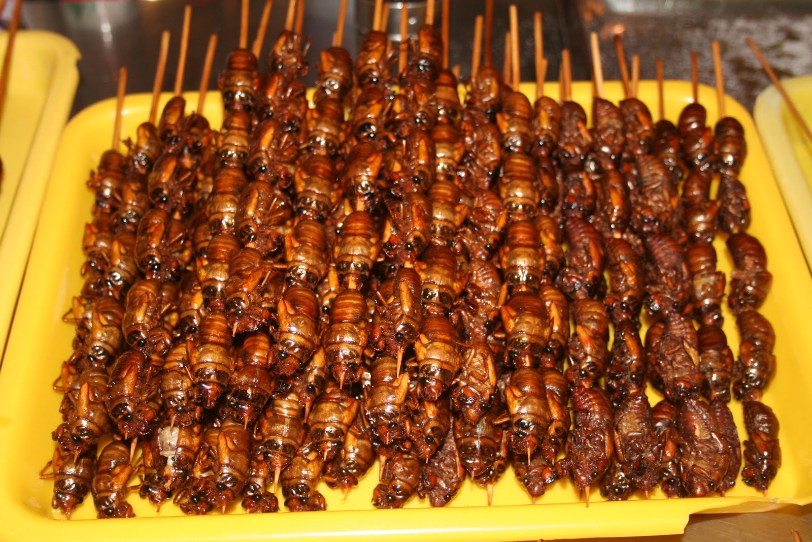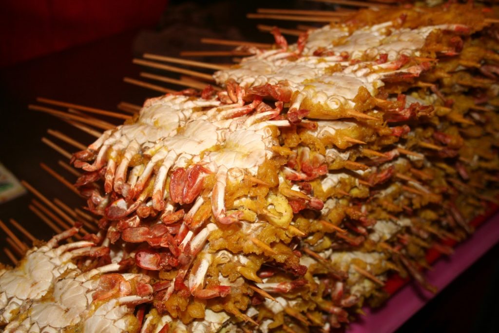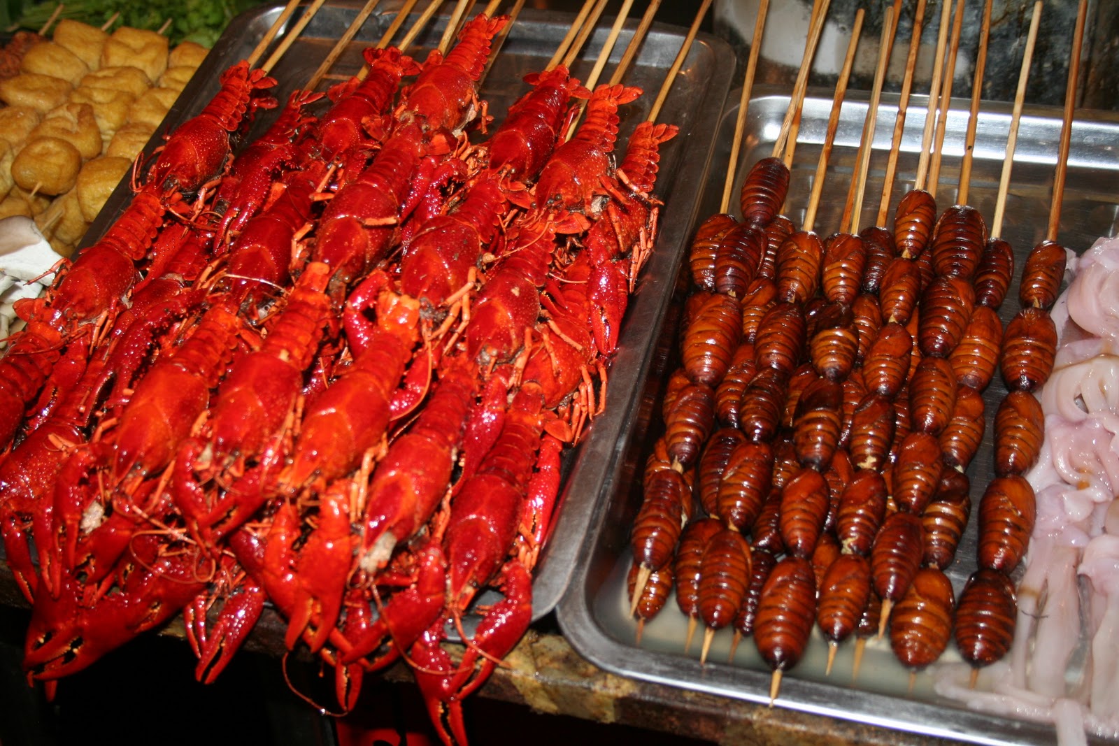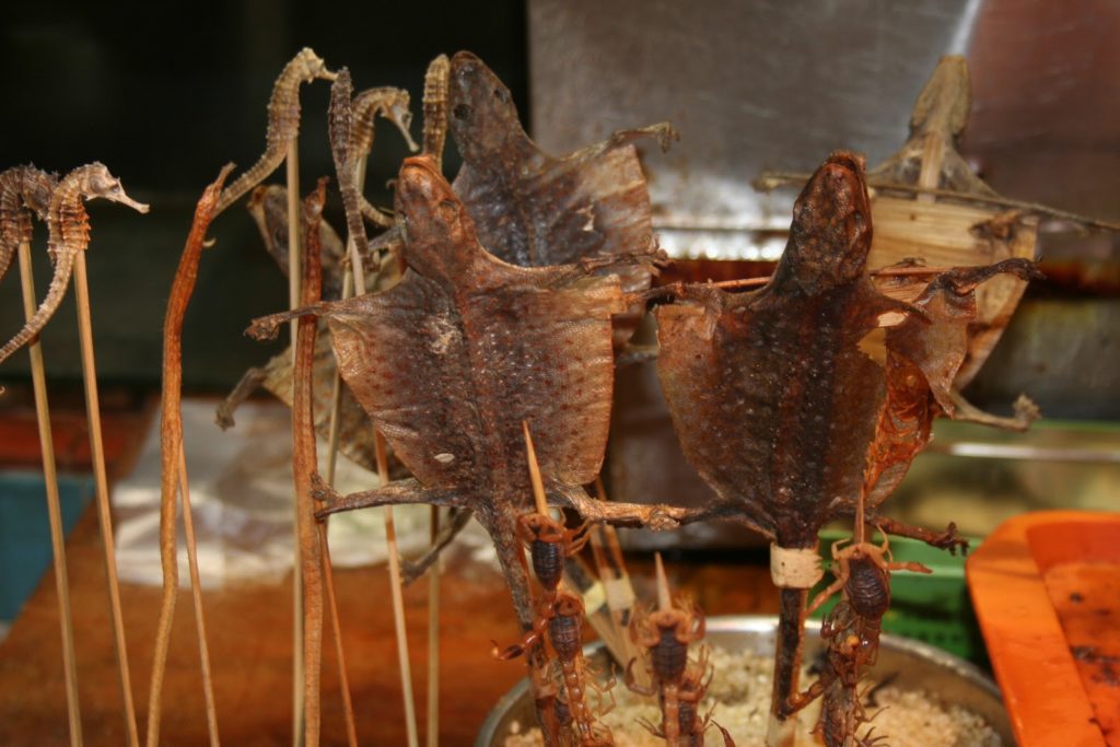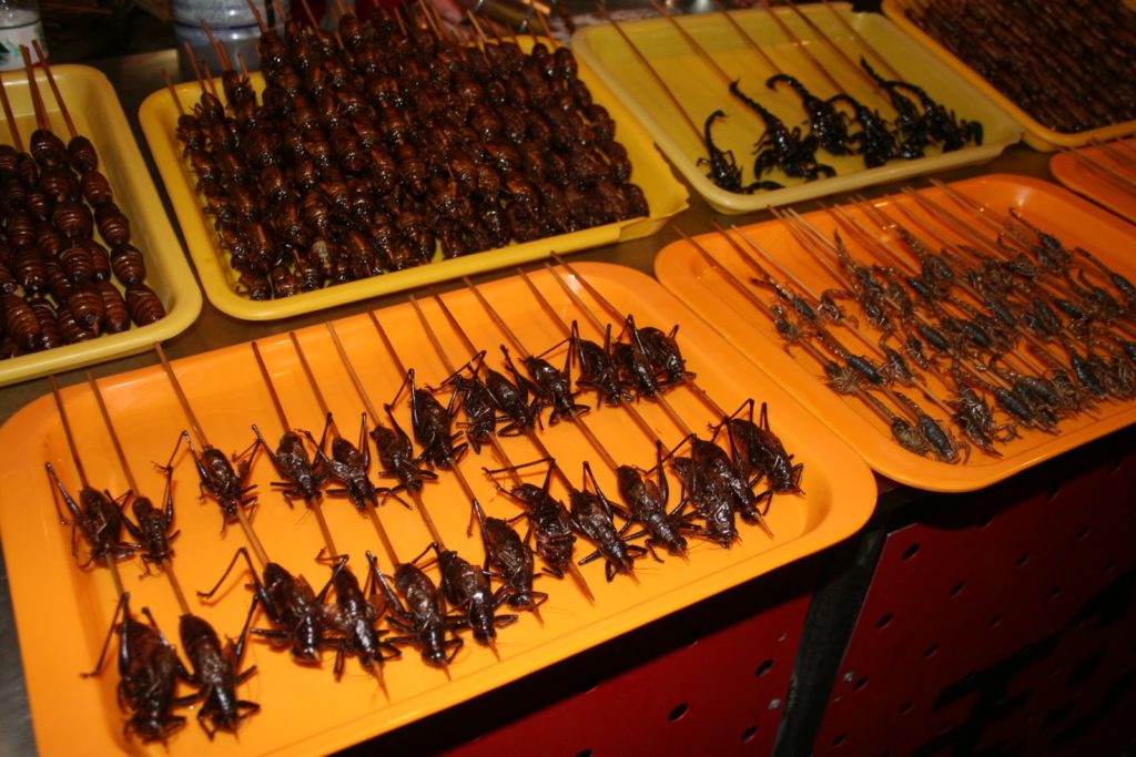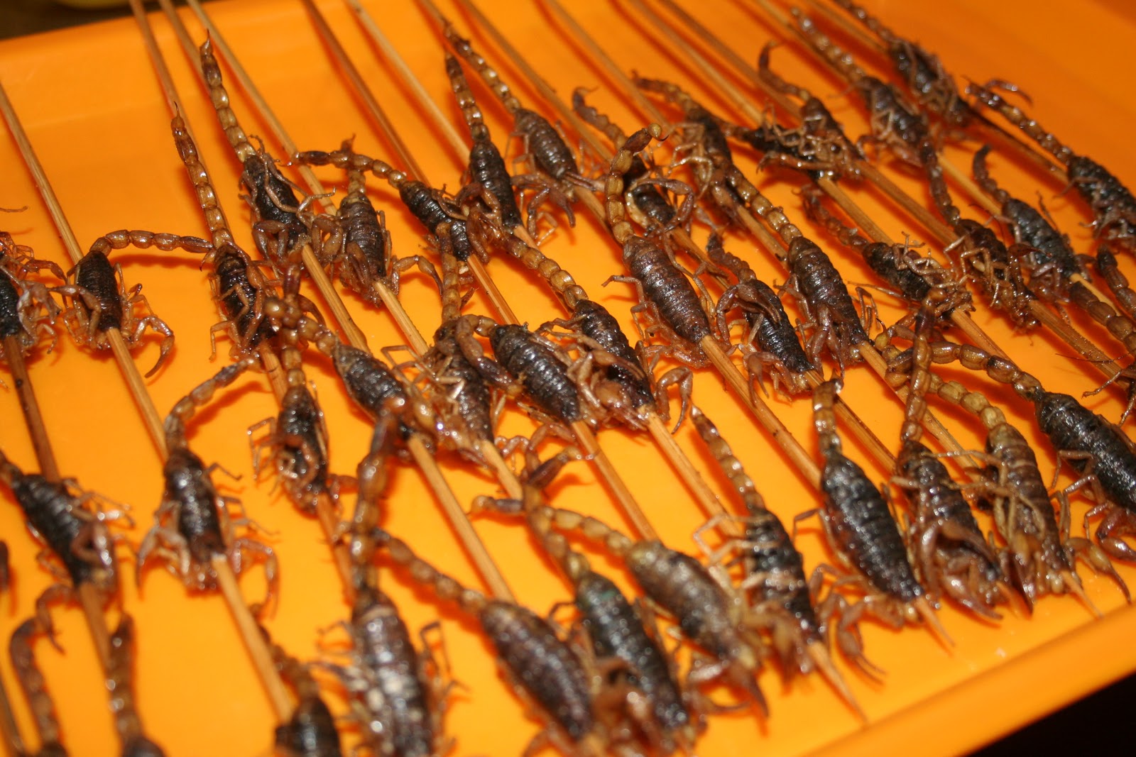 Mais surtout ces brochettes de bestioles en tout genre! Il y a des criquets, des scorpions…