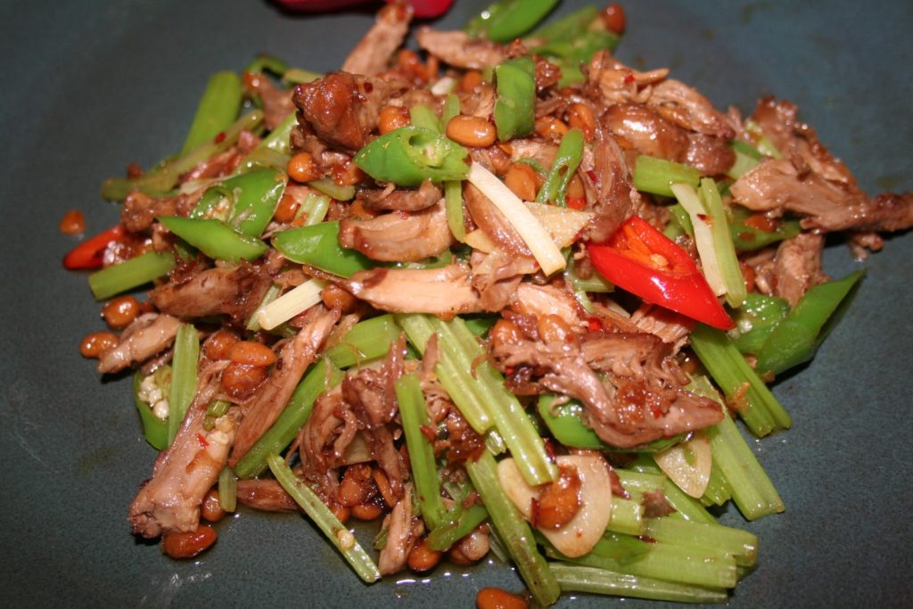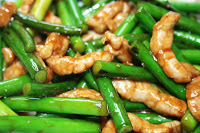 Et de longs haricots frits puis revenus dans une sauce au porc frit et croustillant et ail…