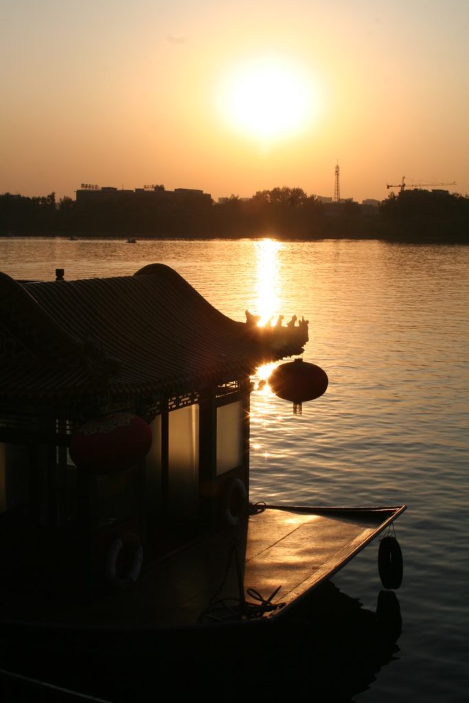 Avant de repartir il est tellement agréable de profiter d’un coucher de soleil au bord du lac dans le parc Baihai avec une tasse de thé au jasmin…
