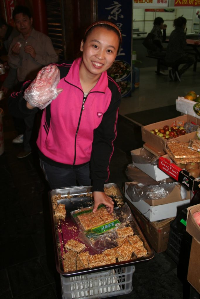 J’ai fini par acheter des petites plaques de « nougat » aux graines de tournesol et aux cacahuètes que mettait en sachets cette demoiselle.