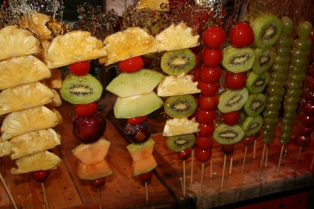 On y trouve absolument de tout. Cela va des sympathiques petites brochettes de fruits au sucre…