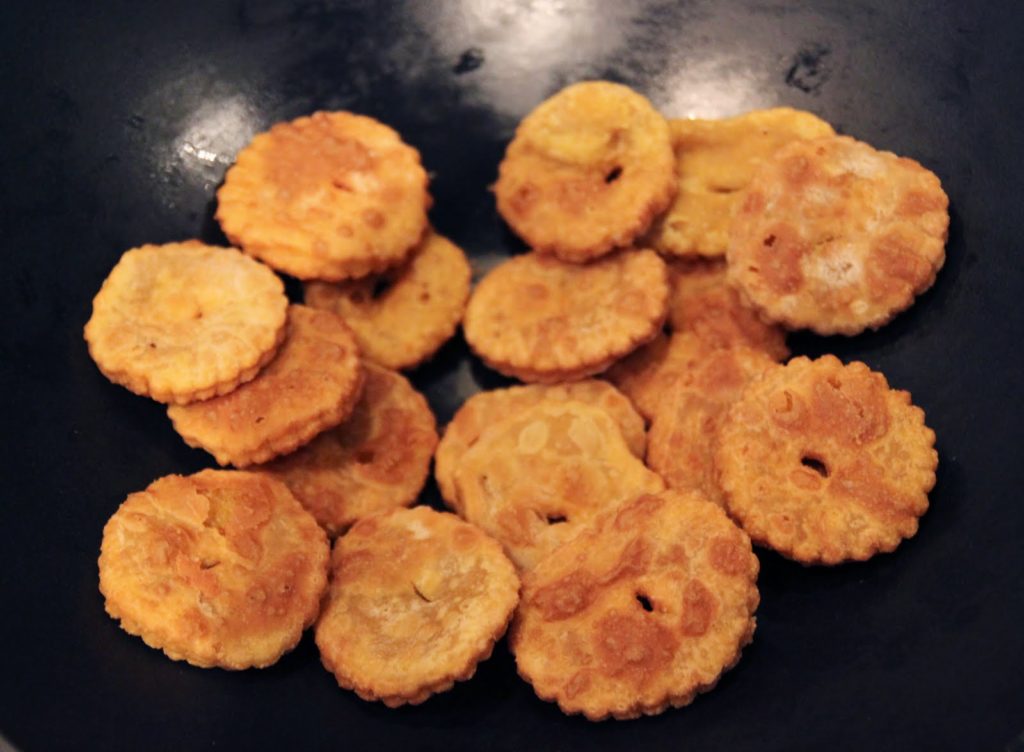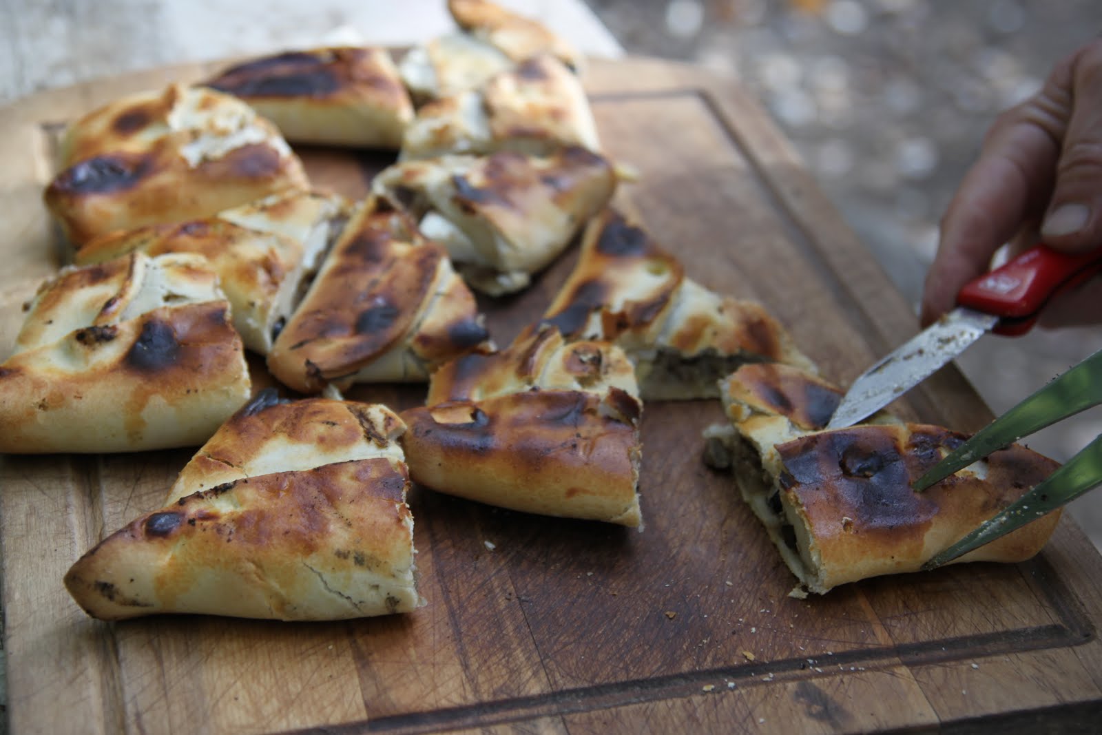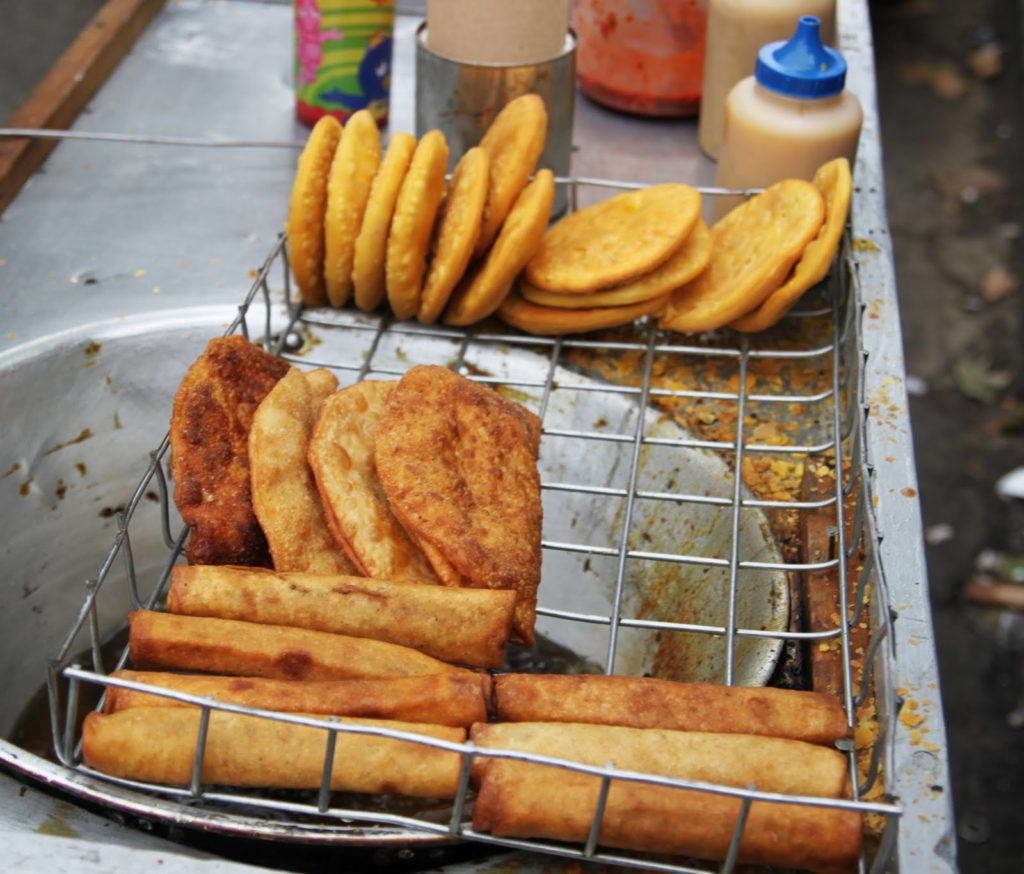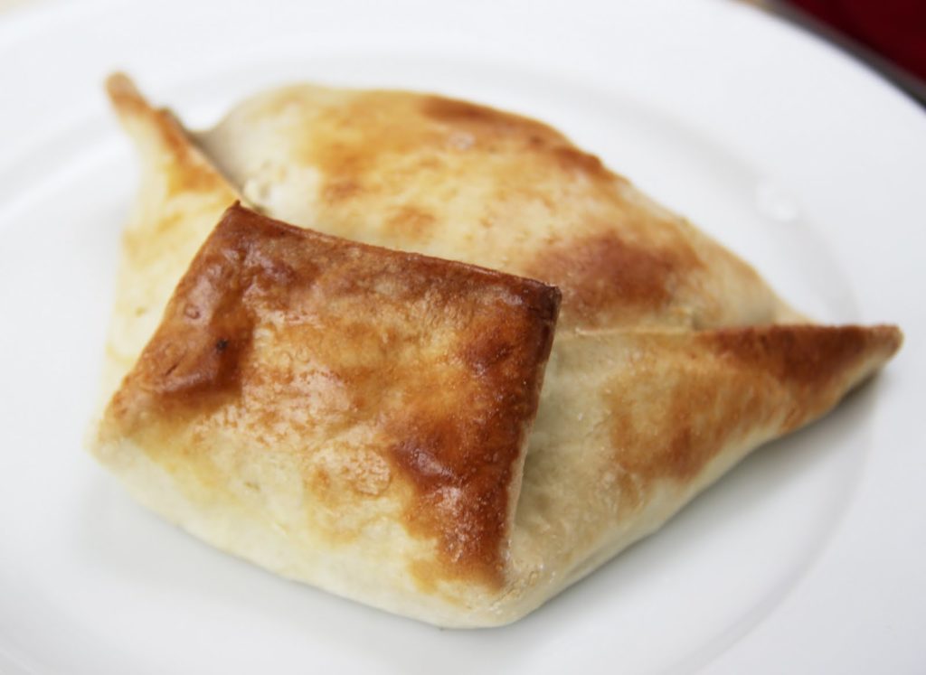 Des sortes de chaussons à la viande, aux raisins et aux oeufs. On les trouve cuites au four ou alors frites.