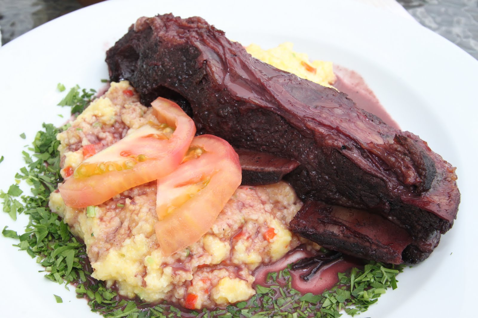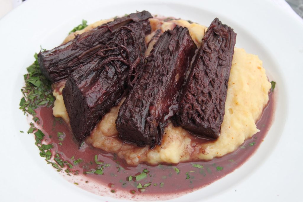 Les plats arrivent enfin. Pas des spécialités à proprement parler, mais des plats délicieux avec des produits locaux. Comme ces travers de boeuf cuits au carménère et sa purée de maïs au fromage et persil.