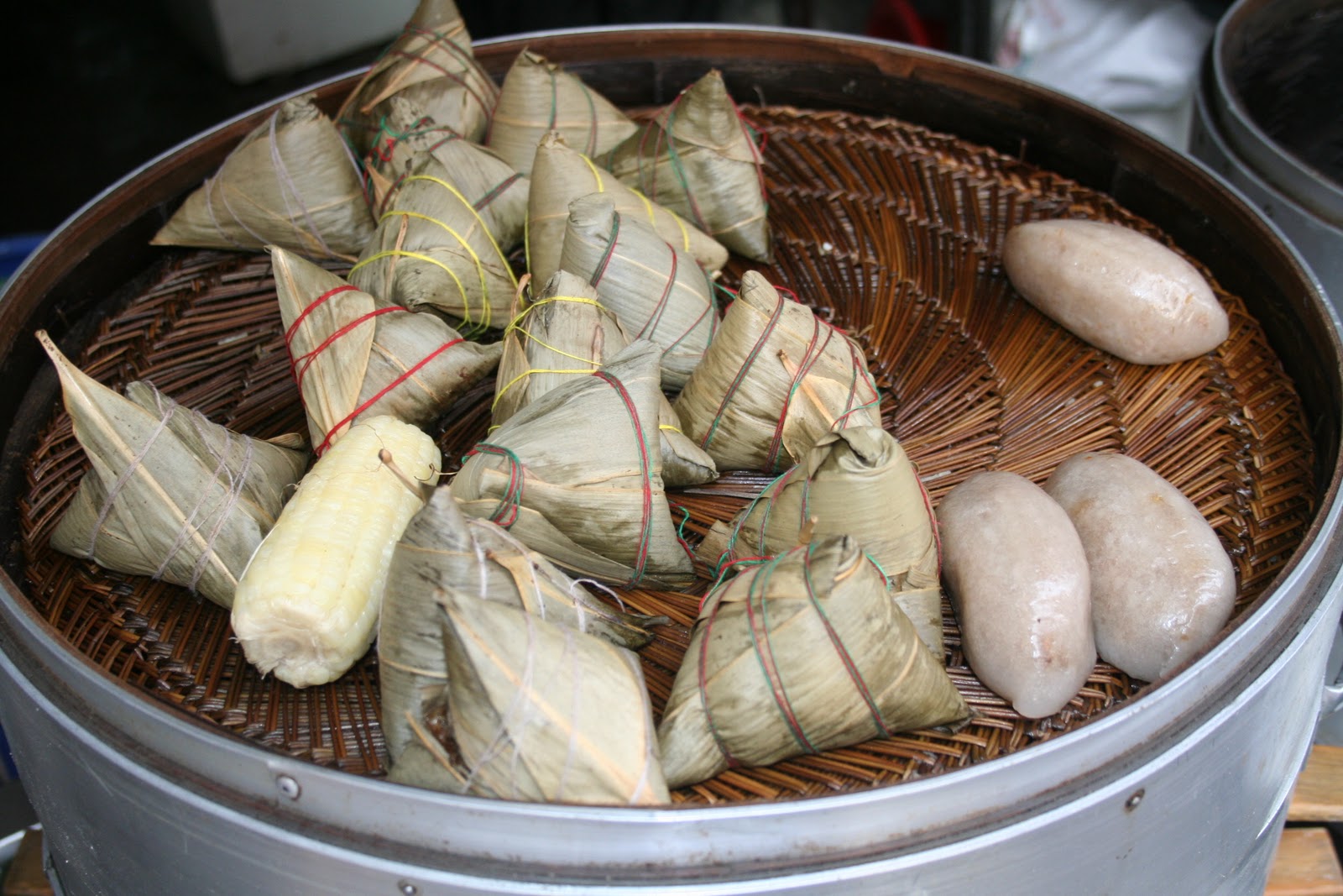 Et du riz gluant cuit dans des feuilles à la vapeur.