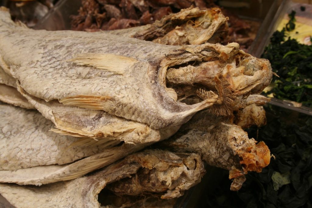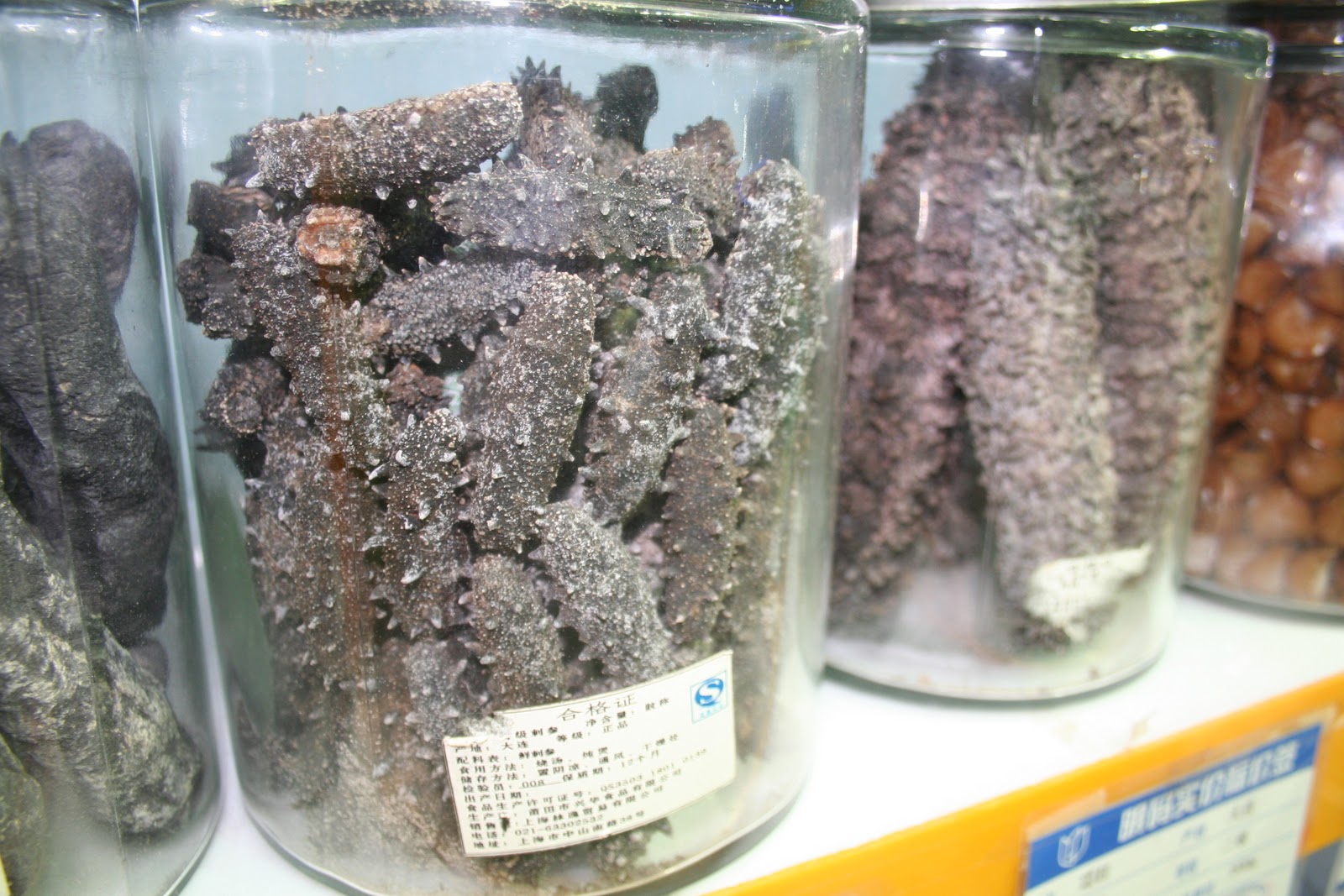 Dans les boutiques, plein de choses très intéressantes, comme ces concombres de mer séchés… Je vous les laisse…!