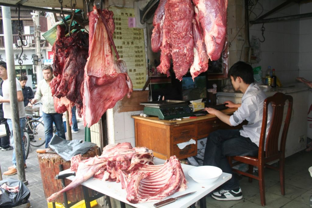 Le quartier des bouchers à Shanghai est amusante à visiter, même si l’odeur peut parfois devenir entêtante, mais j’aime beaucoup des tronçons de bois usés par le temps. Ils sont interdits en France pour une question d’hygiène, mais j’aime beaucoup ce côté brut du bois!