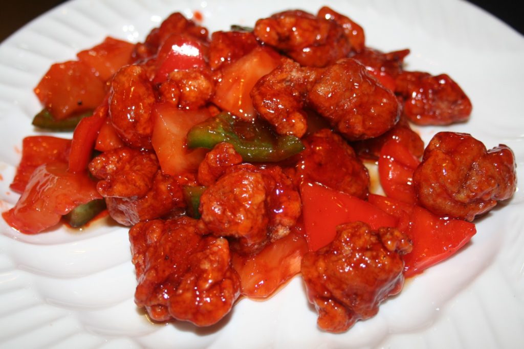 Et un plat de porc à la sauce aigre douce, très très rouge…!