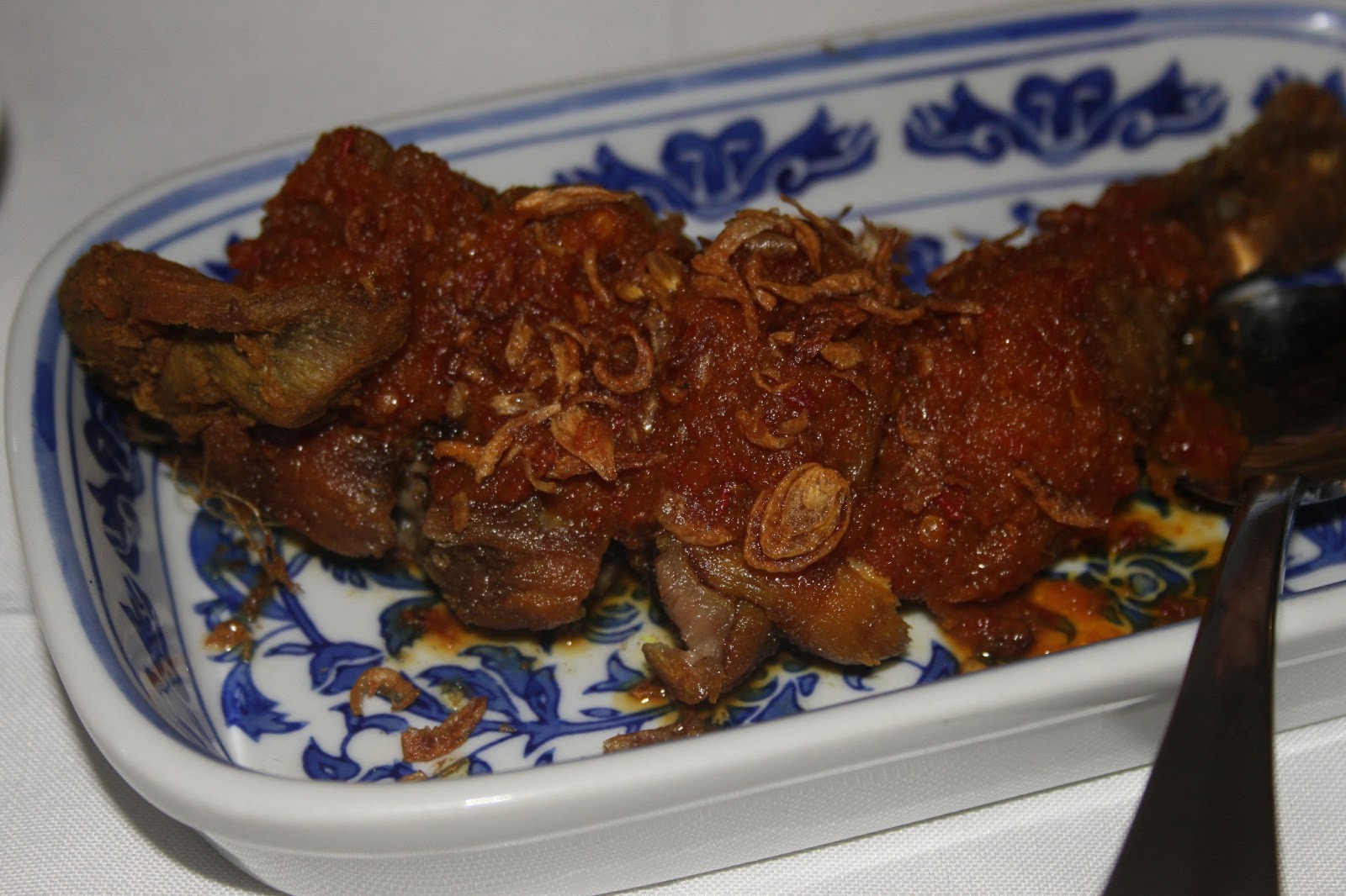 J’ai goûté à plusieurs plats (dont un en particulier à la noix noire que nous verrons plus bas…) comme ce poulet frit garni d’une sauce au piment, tomates, sucre de palme, ail frit: une merveille…!