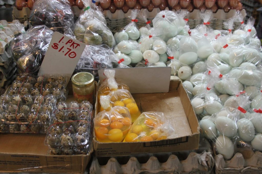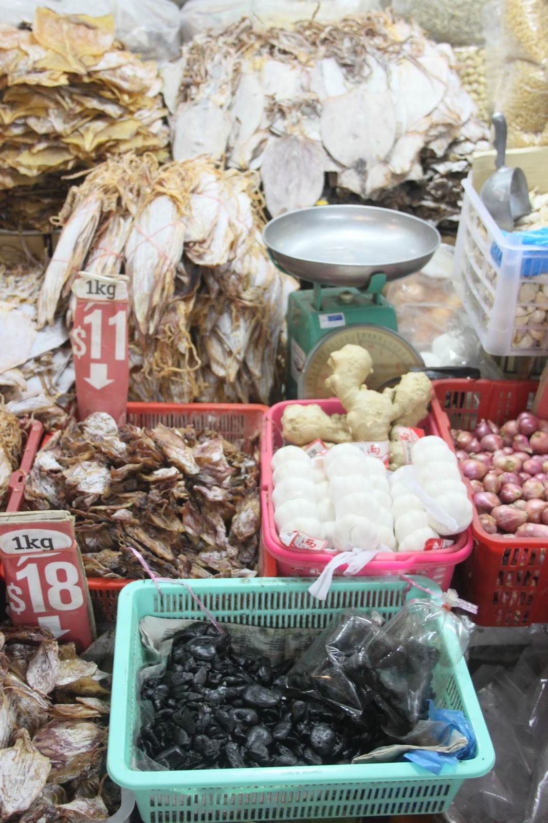 Dans tout le marché (et d’ailleurs je n’en ai vu nulle part ailleurs à Singapour) je n’ai trouvé qu’un endroit, un seul étal qui en vendait.