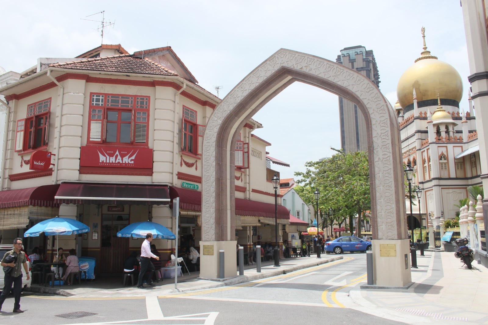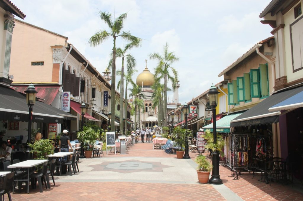 En continuant vers l’ouest, on tombera sur le quartier arabe avec la mosquée Masjid Sultan.