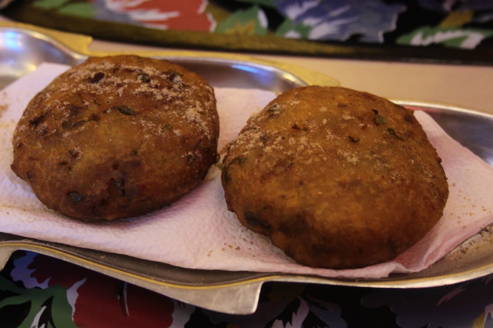 Du coup, j’y dîne (je n’arrête pas de manger non?). Pour commencer, de délicieux beignets de pommes de terre aux épices et aux oignons…