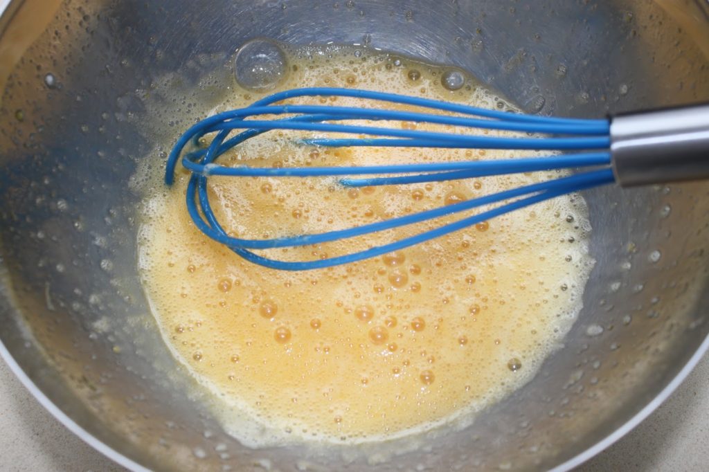 - Mélangez au fouet pour dissoudre le sucre, mais sans insister.