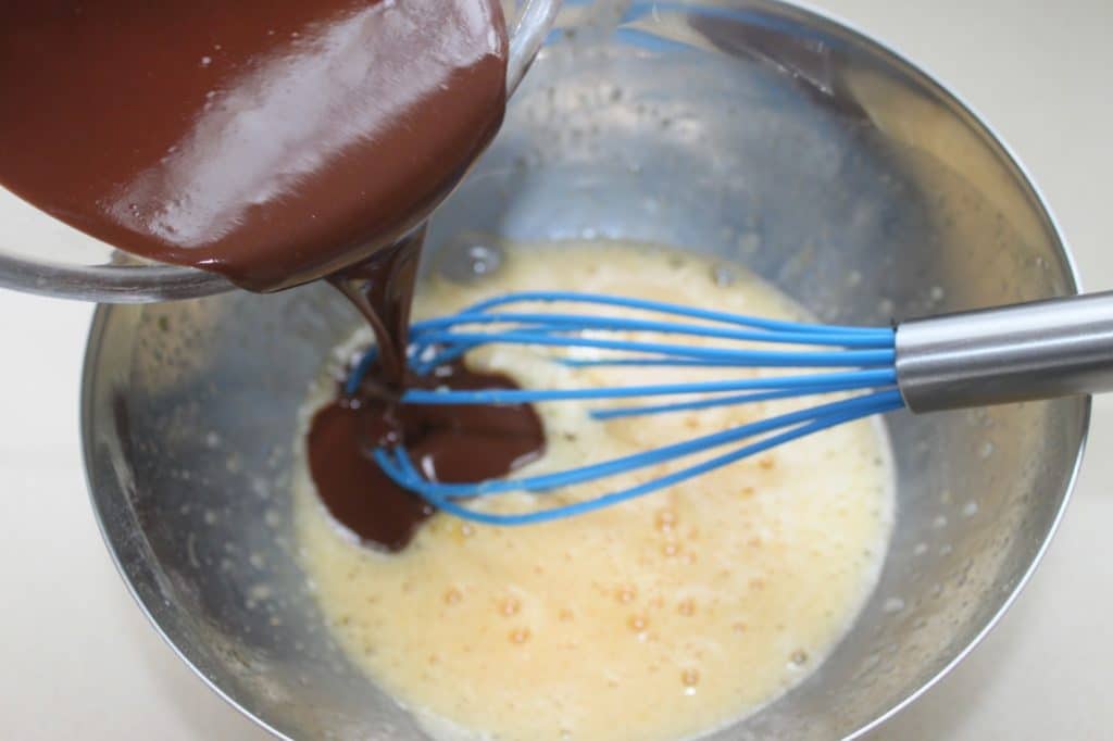 - Versez le chocolat/beurre fondu puis mélangez bien.