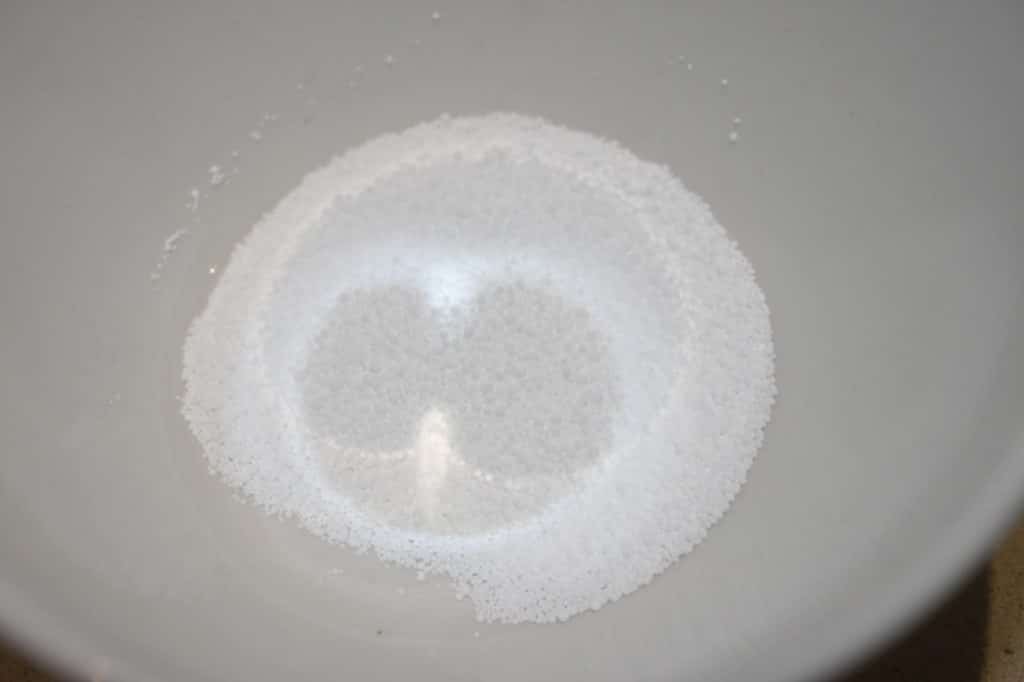 - Versez-en 10g dans un petit récipient et ajoutez les 15ml d’eau. Mélangez jusqu’à complète dissolution.