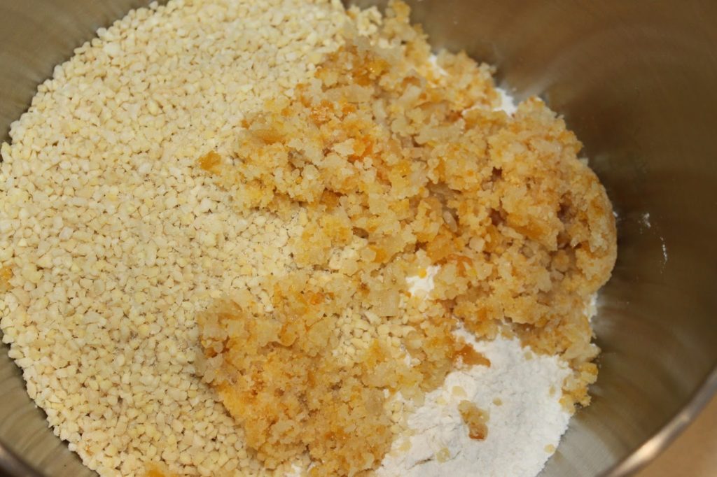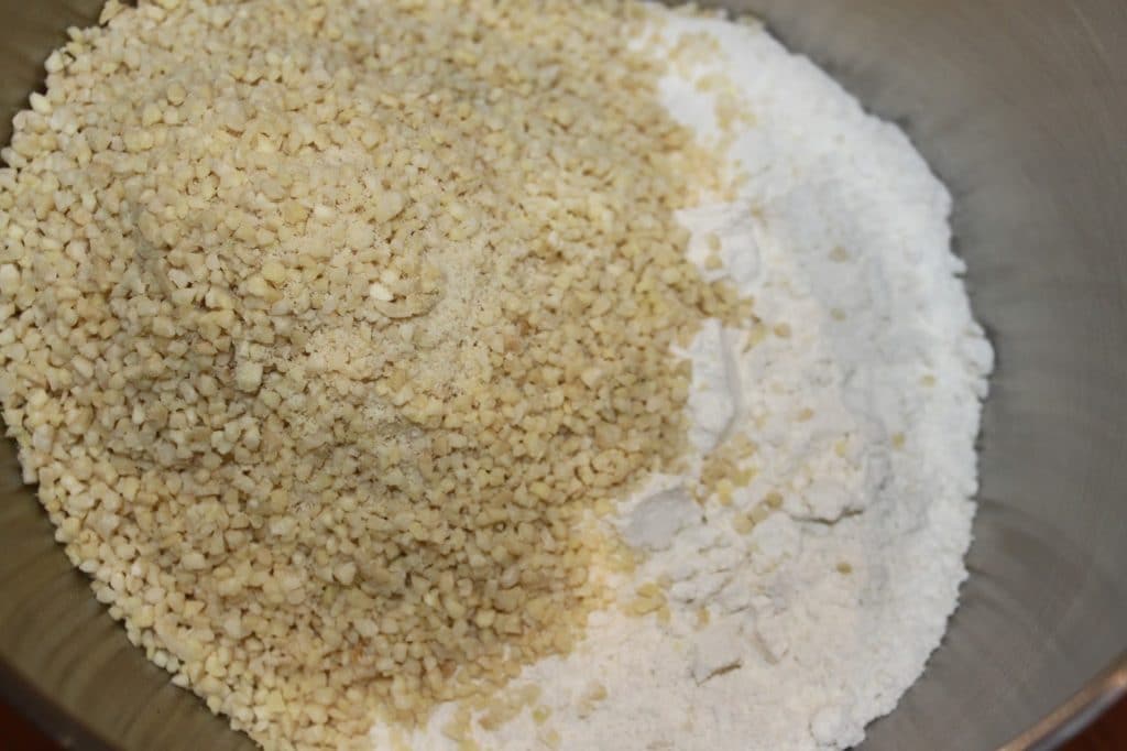 - Versez la farine et les amandes hachées dans un récipient ou la cuve de votre robot.