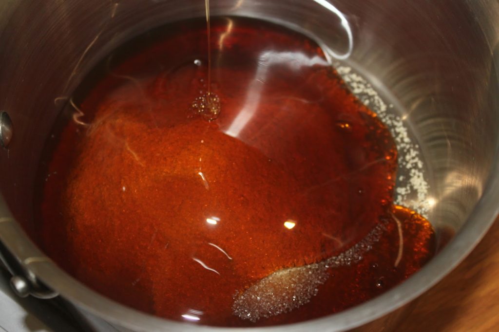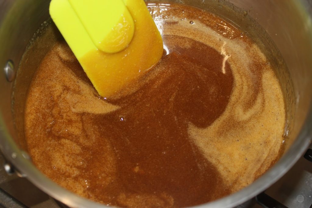 - Versez le miel, le sucre et le sel dans une casserole sur feu doux.