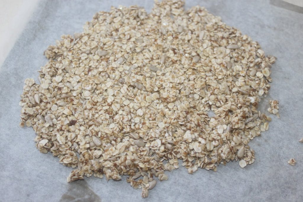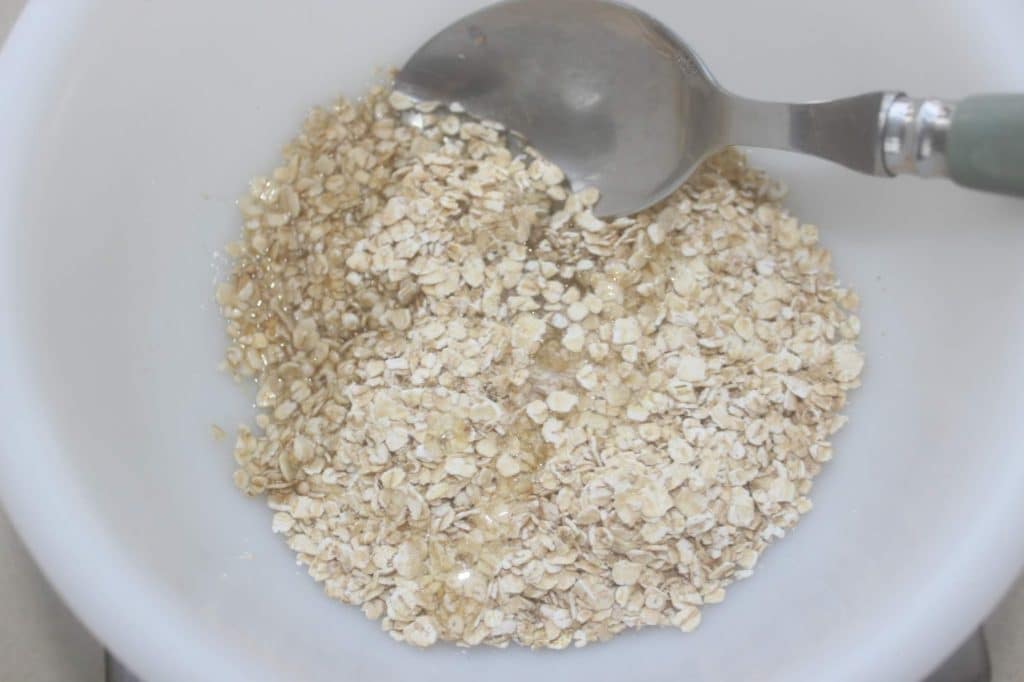 Mélangez les flocons d’avoine avec l’huile, le sirop d’agave.