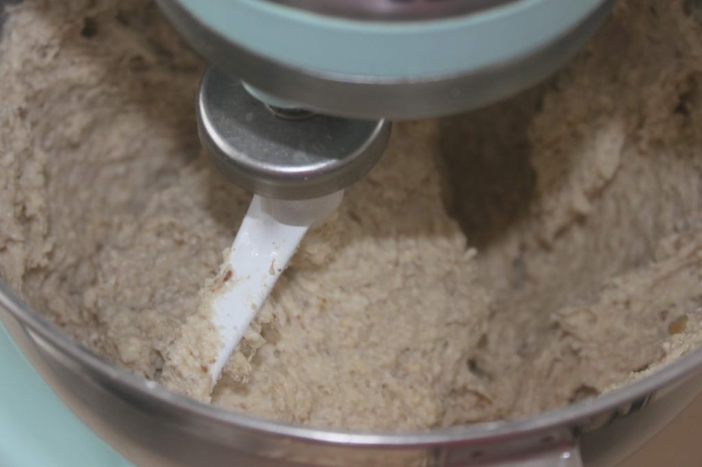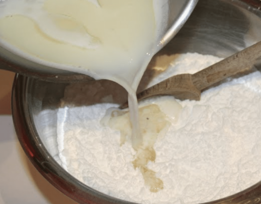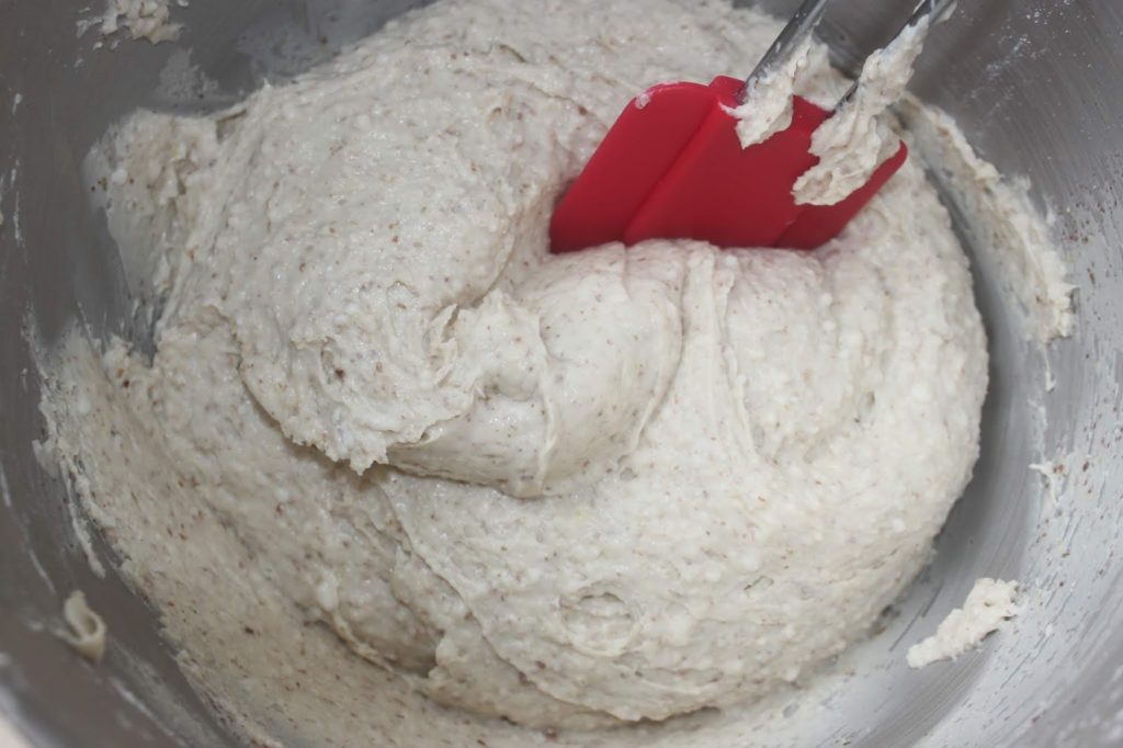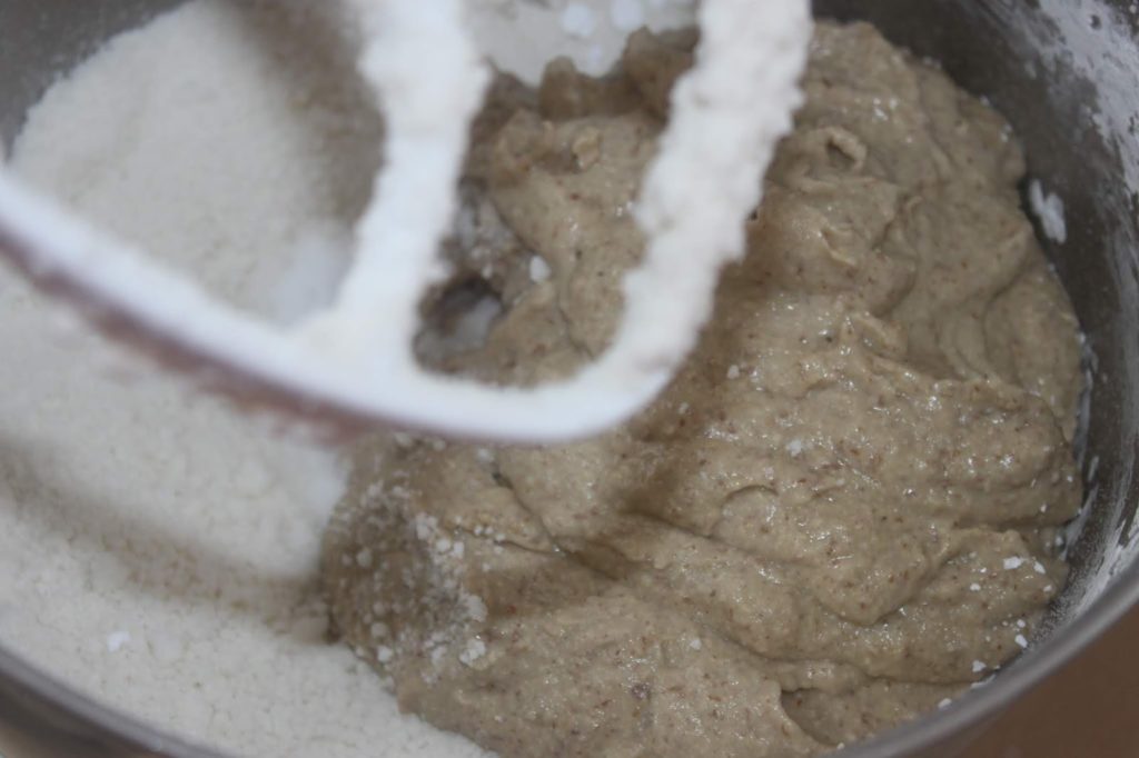 Quand le liquide bout, versez sur la fécule et mélangez immédiatement avec soit une cuillère, soit la feuille de votre robot. Mélangez ainsi pendant 4-5 minutes.