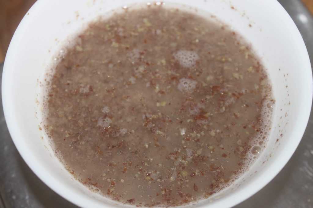 Poner en remojo las semillas de lino con los 145 g de agua.