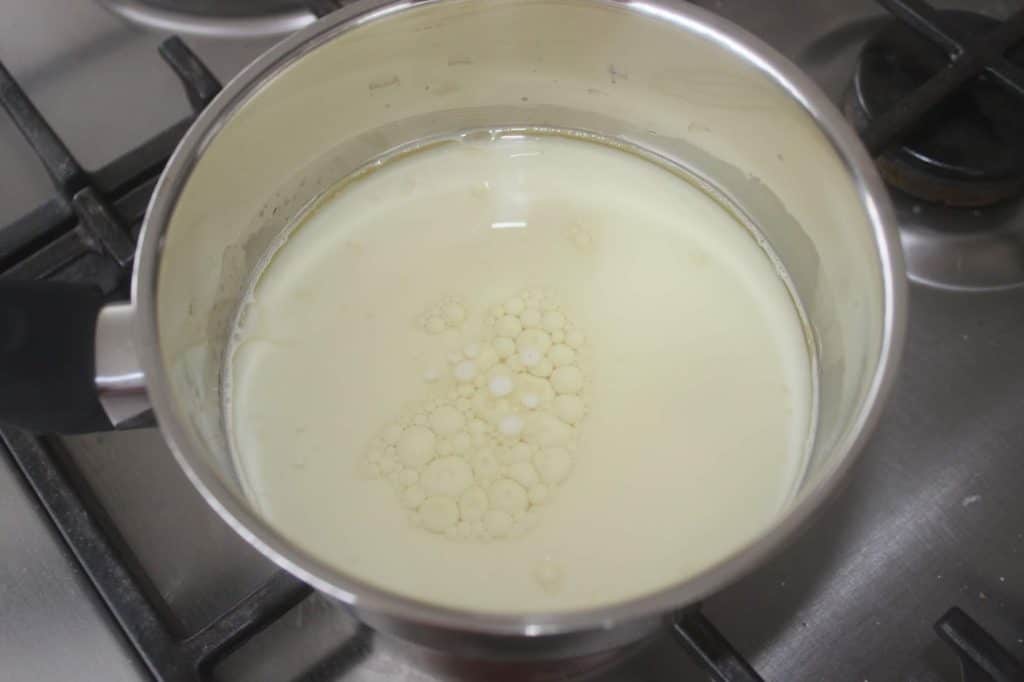 Mettez le lait d’avoine et l’huile à bouillir dans une casserole.
