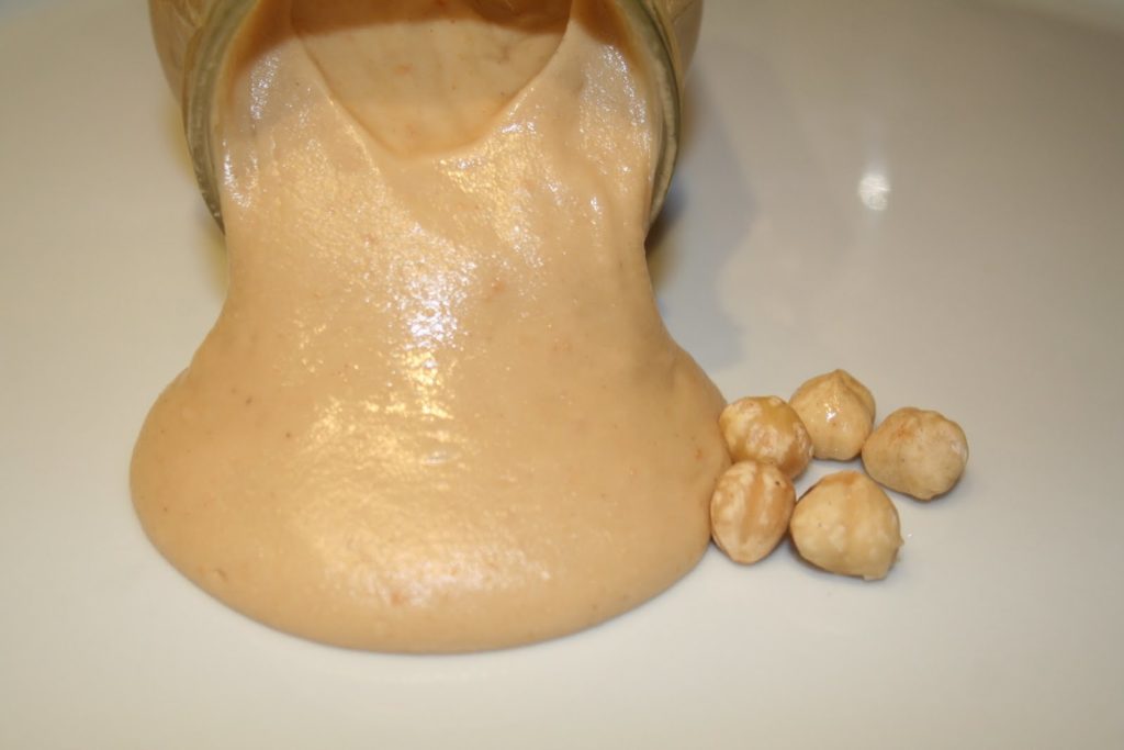 - Mettre la pâte de noisettes dans un pot avec couvercle et réserver au frais. Elle se conserve assez longtemps, aussi longtemps que le paquet des noisettes l’indique!