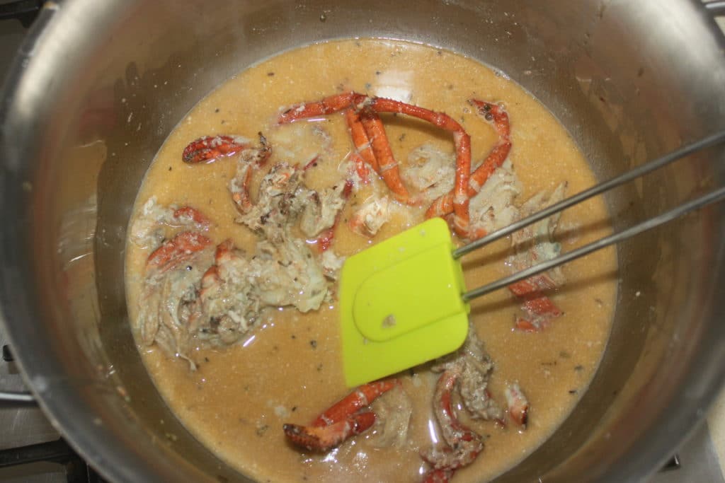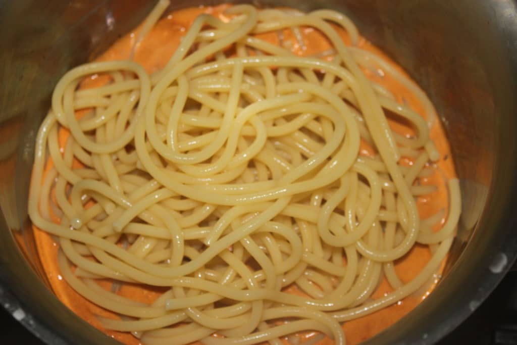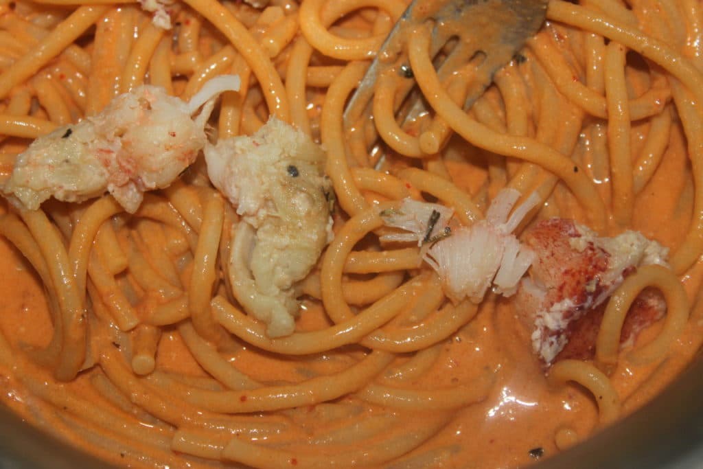 Mezclar bien, cocinar durante 1 o 2 minutos para recubrir la pasta y terminar la cocción, luego agregar toda la carne de langosta.