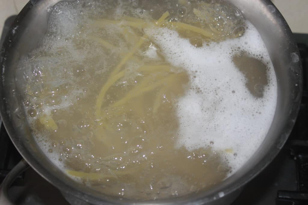 Hervir durante dos minutos y luego verter la salsa en el cuerpo y la cabeza.