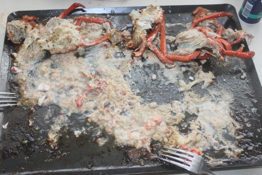 No parece muy apetecible en las fotos, pero es simplemente delicioso. Sí he recuperado todo lo de las colas y las cabezas. Sólo guardé las piernas aquí.