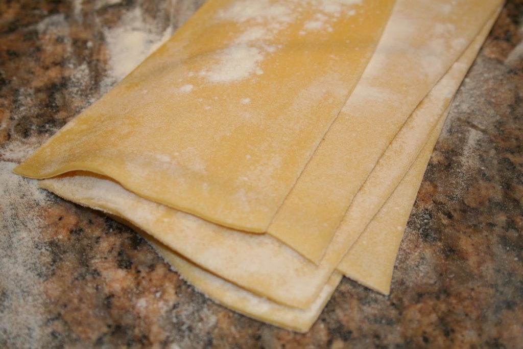 Les pâtes aux œufs frais sont simples à faire mais j’ai été surpris que certains de mes amis n’aient pas la recette. Je propose ici une recette qui diffère très légèrement de la recette 100g de farine pour un œuf. Elle est un peu plus riche en jaunes, un peu moins élastique et sèche plus rapidement. Je préfère les pâtes qui sèchent pour pouvoir les cuire ensuite « al dente »!