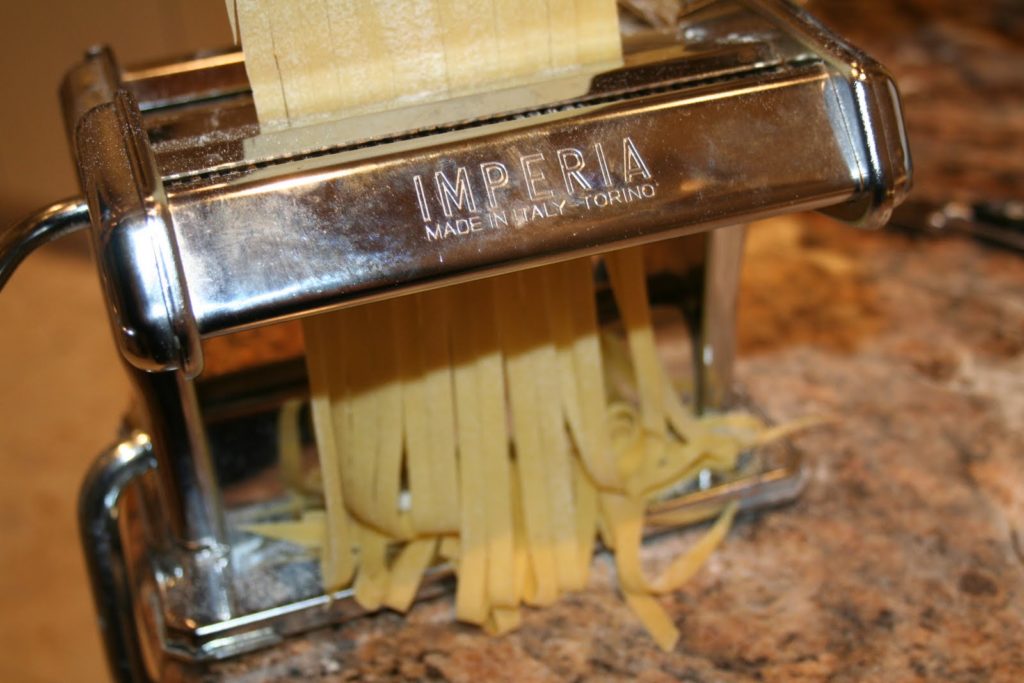 Passer ensuite au coupe pâtes. Dans le commerce, nous n’avons pas beaucoup de choix (sauf en Italie!) entre les Linguine et les Tagliatelles! Sauf sur les robots Kenwood qui ont un ustensile avec une large gamme de choix pour réaliser une multitude de pâte! Mais bien évidemment c’est hors de prix!