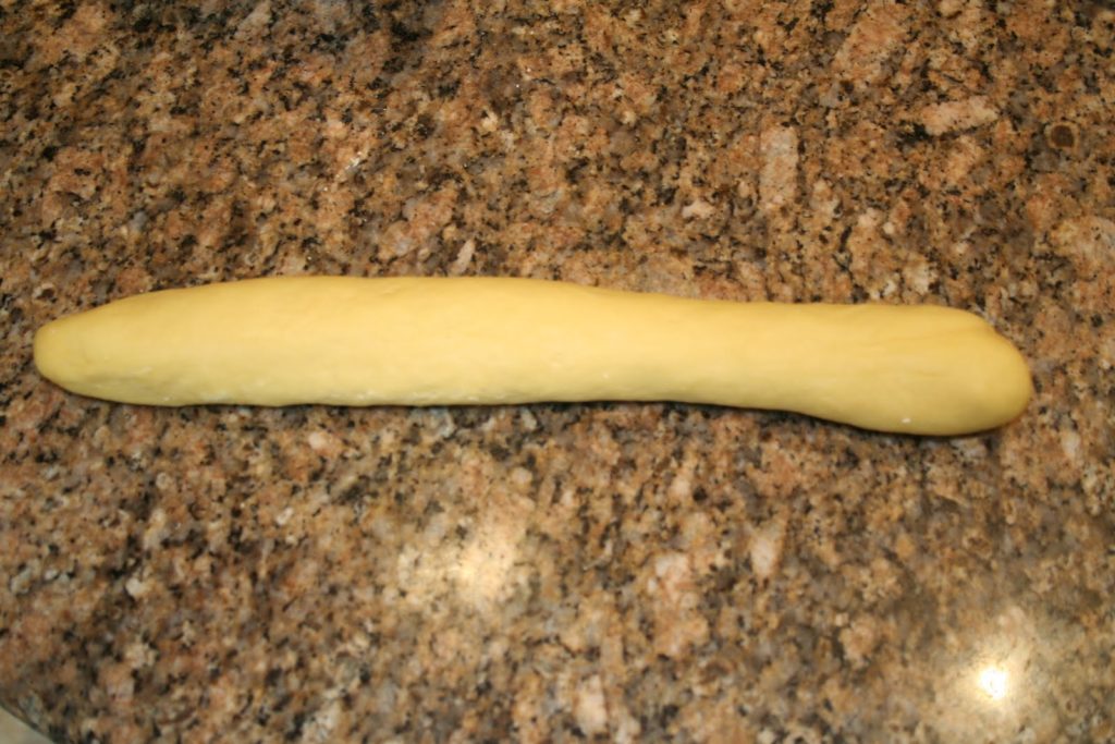 Je poursuis à la main le pétrissage. Rouler la pâte en boudin.