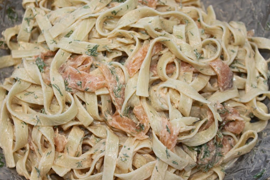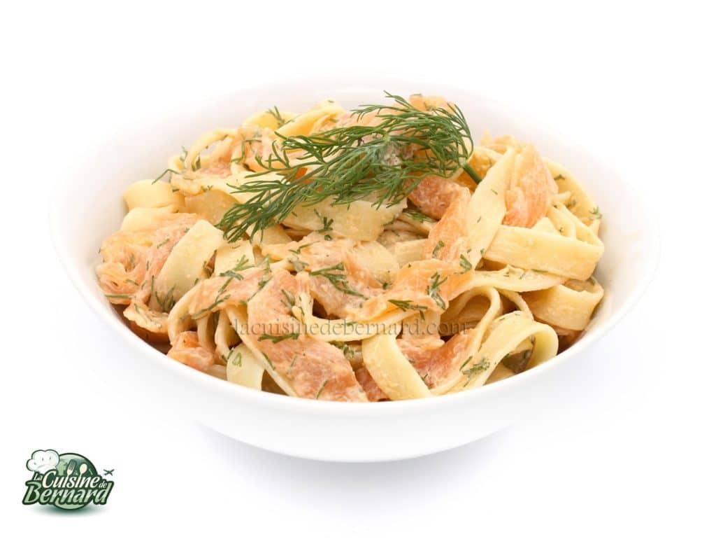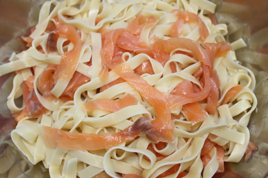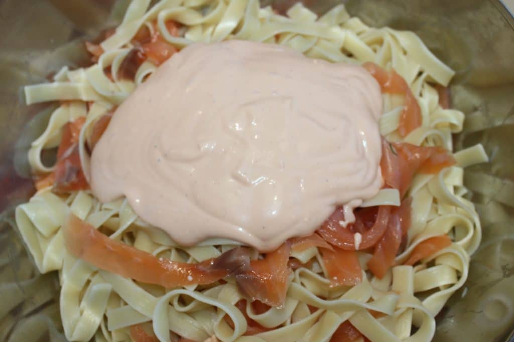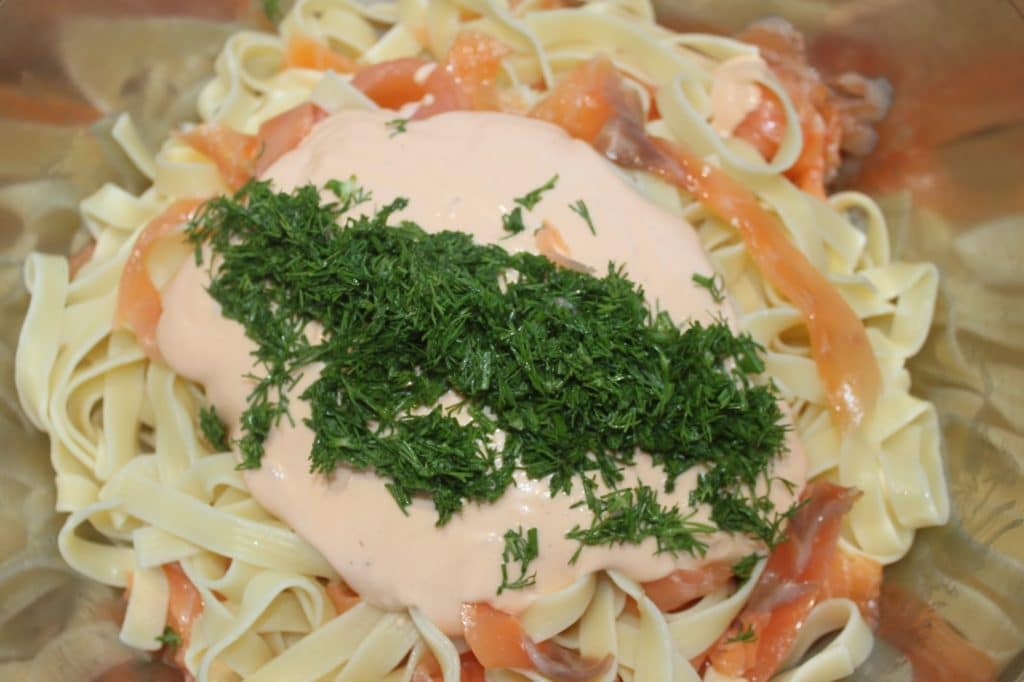 Pâtes froides en sauce au saumon et à l'aneth