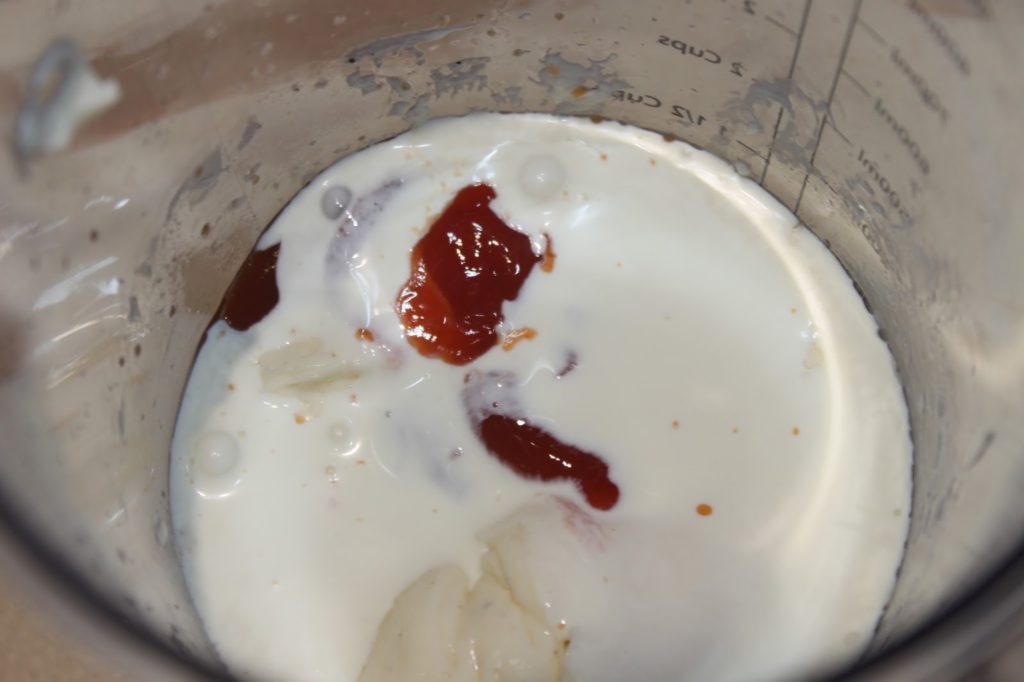 - Versez alors le ketchup et la crème liquide et mixez de nouveau.