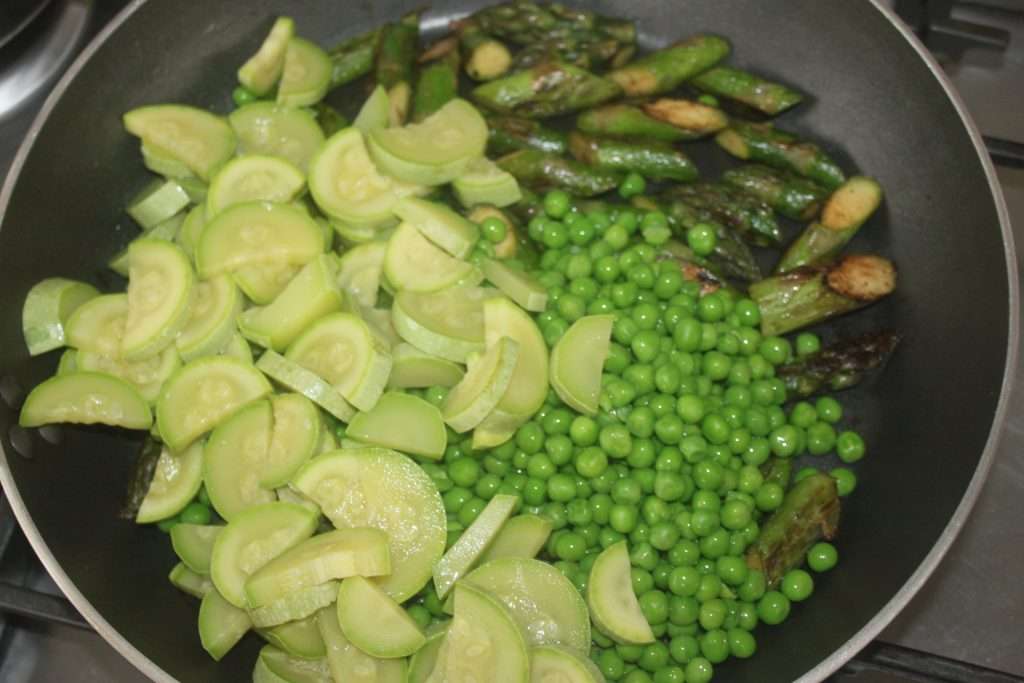 ¡Esta receta la hice un poco así, con verduras del mercado y resultó deliciosa y muy apreciada por mis invitados! La lima da una impresión de frescura y las verduras están cocinadas en su punto. El delicioso pesto casero con cilantro, cacahuetes, espinacas y lima le da un toque muy original. ¡No dudes en poner las verduras que más te gusten!