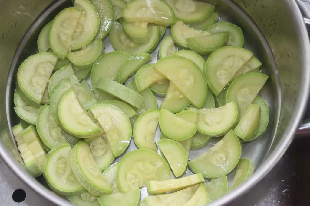 Cocerlas al vapor durante 6 minutos. Detenga la cocción pasándolas por agua fría.
