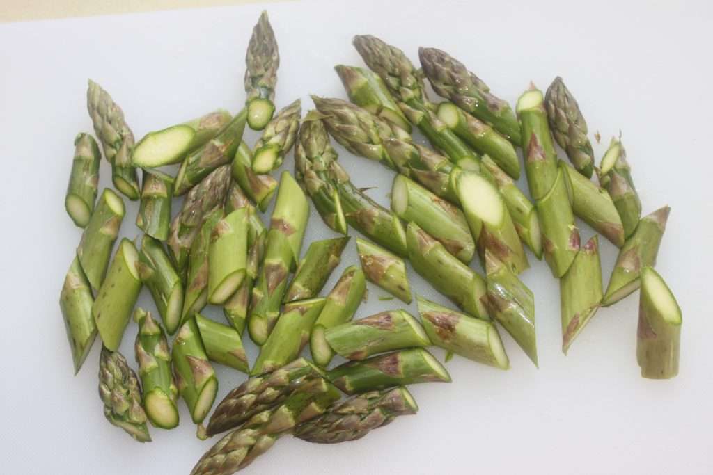 Lavar los espárragos verdes. Recorte la base si es necesario si están blandas o dañadas.