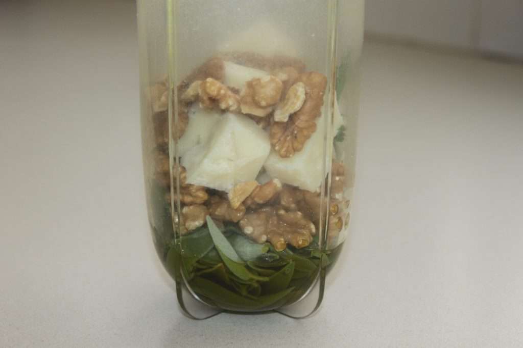 Hornear durante 30 minutos a 200°C en el horno precalentado. 5-7 minutos antes del final de la cocción, añado un poco de pesto en la superficie, ¡que se volverá a triturar! Una delicia.