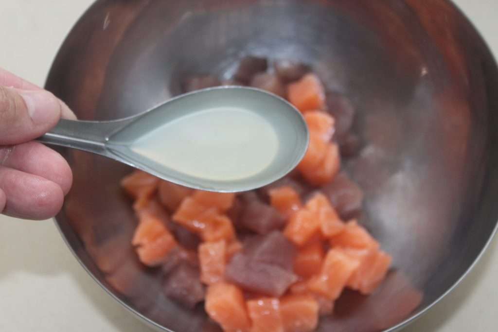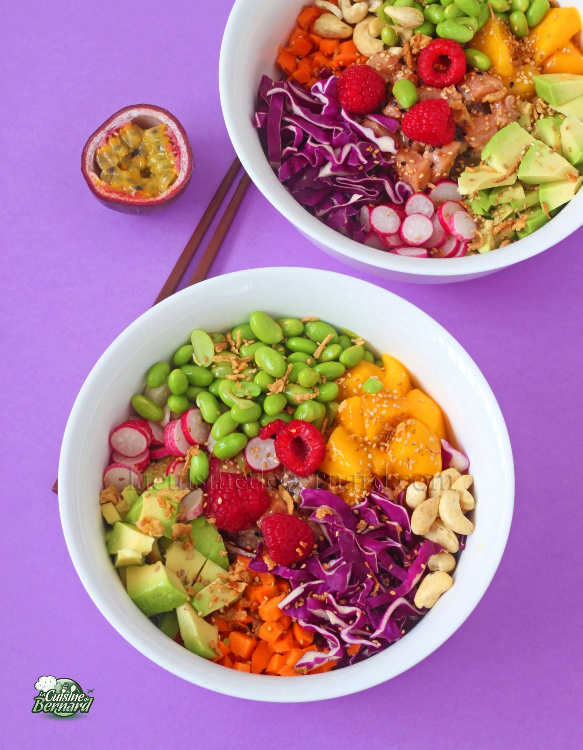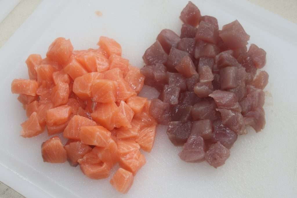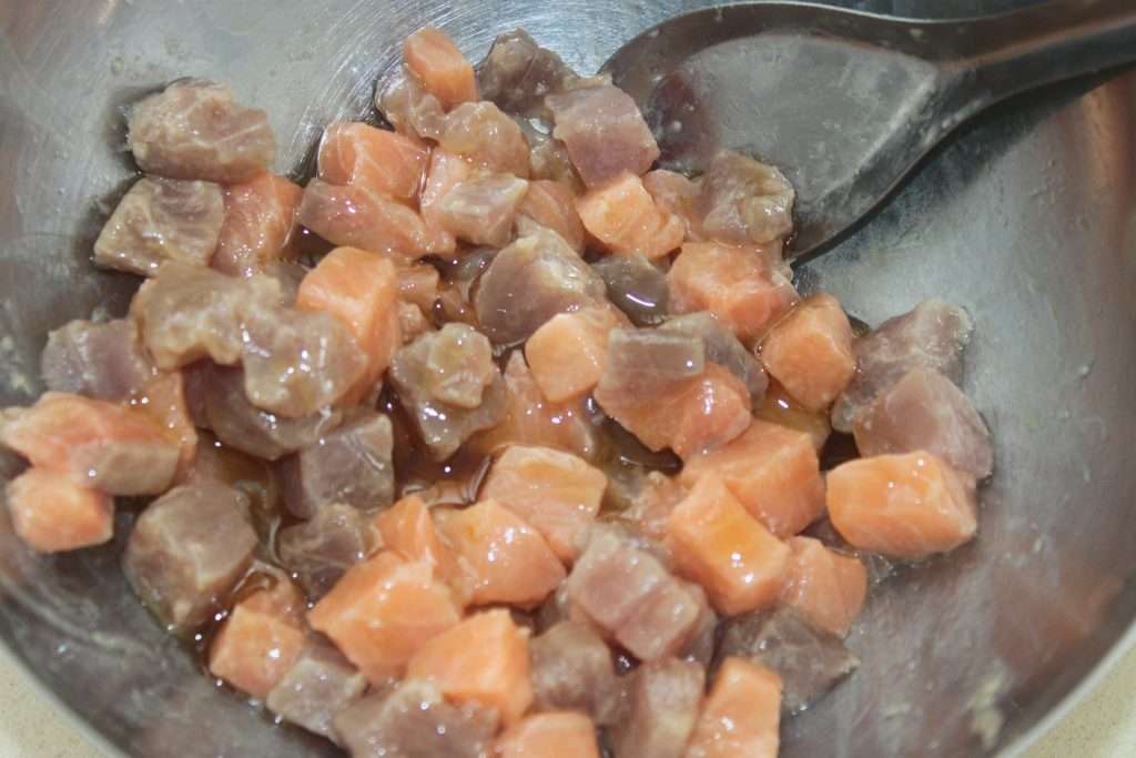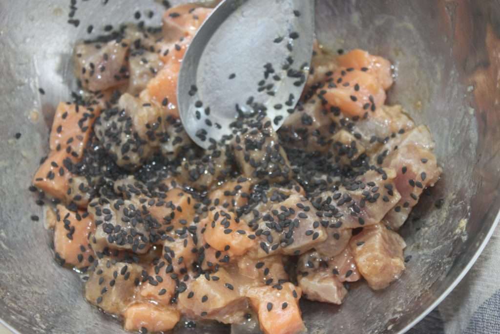 Recette du POKE BOWL THON SAUMON SAUCE MANGUE-PASSION :