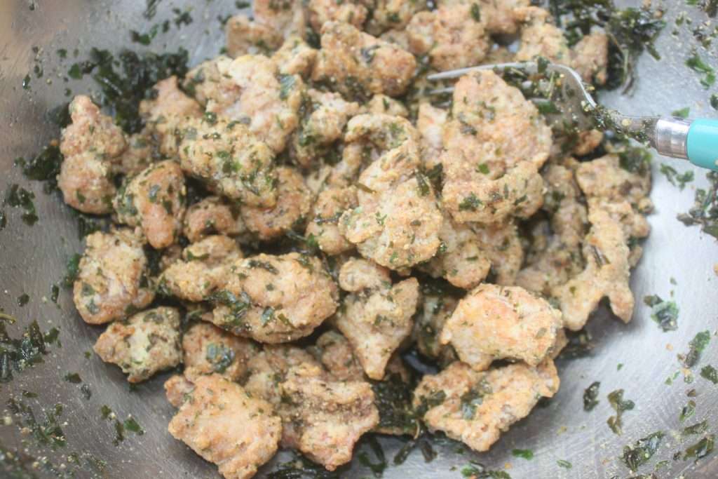 No olvides la cebolla en polvo, la harina de maíz y la clara de huevo.