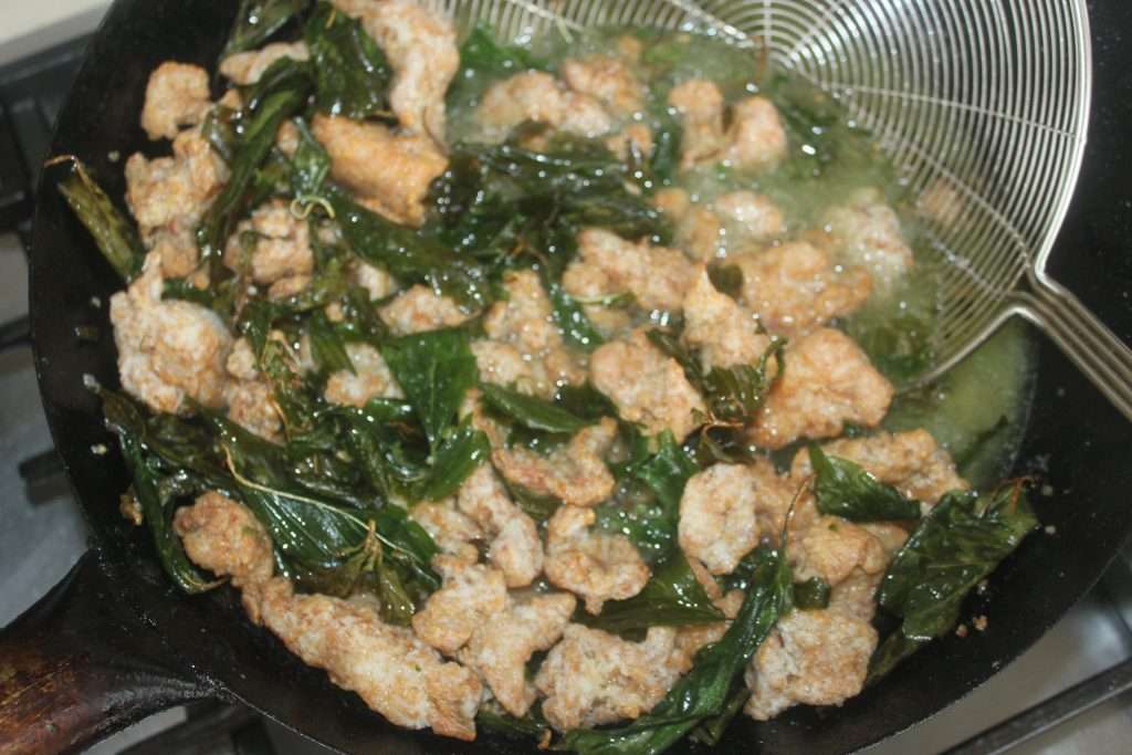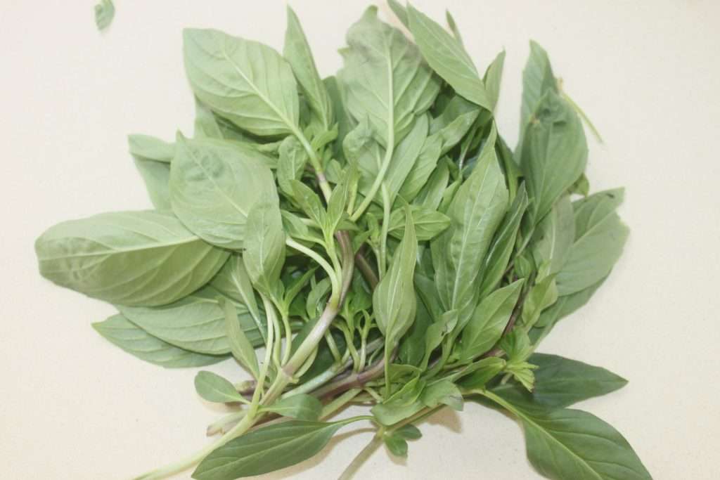 - Pendant cette première friture, effeuillez le basilic thaï.