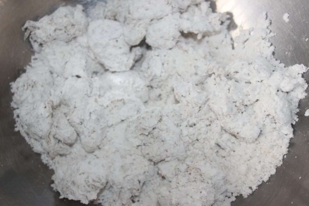 Vierta el almidón de tapioca en otro recipiente. Aunque ponga harina, en realidad es almidón (en inglés pone starch).