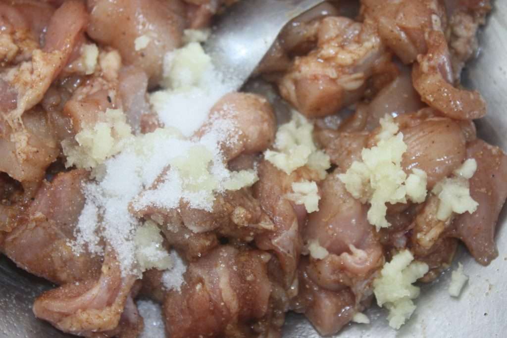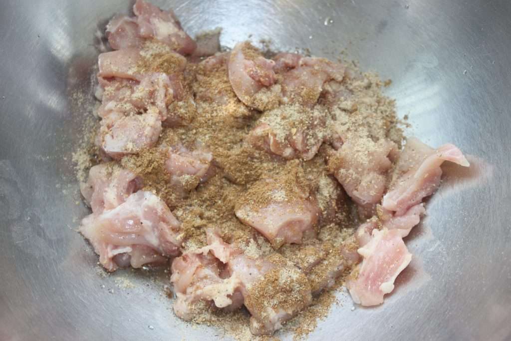 Poner todos los ingredientes de la marinada en un recipiente con el pollo.